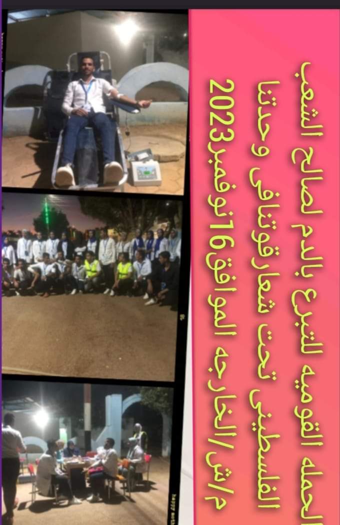"البداية" واصلت مديرية الشباب والرياضة، الحملة القومية للتبرع بالدم لصالح الشعب الفلسطيني تحت شعار قوتنا في وحدتنا بمركز التنمية الشبابية بقطاع الخارجة الموافق 16 نوفمبر2023،
