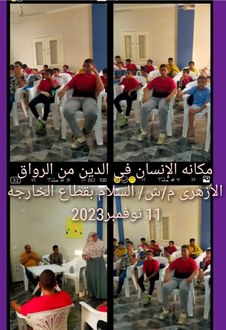 نفذت مديريه الشباب والرياضه مكانه الإنسان فى الدين من الرواق الأزهرى بمركز شباب السلام بقطاع الخارجه الموافق11نوفمبر2023،،