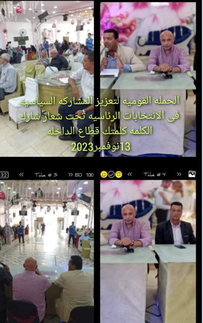 كما نظمت الحملة القومية لتعزيز المشاركة السياسية فى الانتخابات الرئاسية تحت شعار شارك الكلمة كلمتك، بمركز التنمية الشبابية بالداخلة الموافق 13 من نوفمبر 2023.