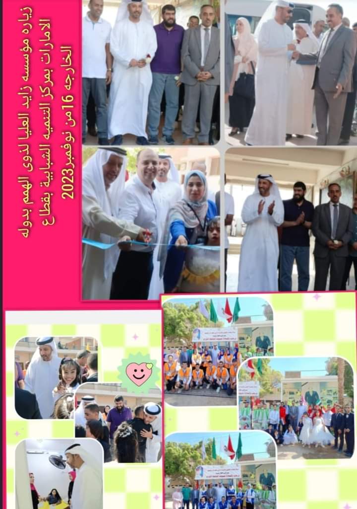 وجاء بزيارة مؤسسة زايد العليا لذوي الهمم بدولة الامارات بمركز التنمية الشبابية بقطاع الخارجة الموافق 16 من نوفمبر 2023،،