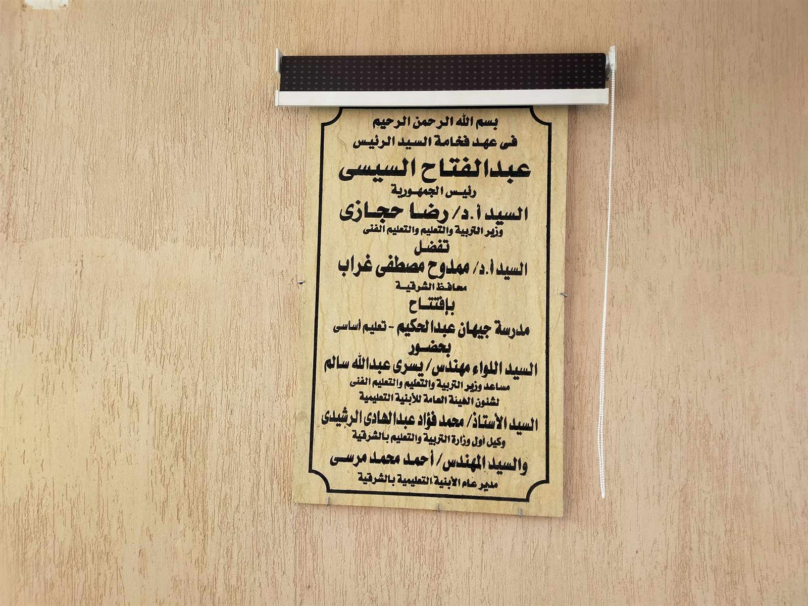 افتتح الدكتوررضا حجازى وزير التربية والتعليم والتعليم الفني، يرافقه الدكتورممدوح غراب محافظ الشرقية والمهندس محمد فؤاد الرشيدى وكيل أول وزارة التربية والتعليم بالمحافطة ورئيس هيئة الابنية التعليمية ولفيف من القيادات التنفيذية والنواب اليوم السبت مدرسة جيهان عبدالحكيم للتعليم الأساسي بقرية شرويدة بمركز الزقازيق.