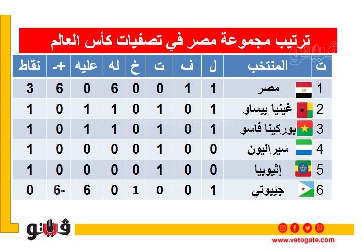 جدول ترتيب مجموعة مصر بتصفيات كأس العالم
