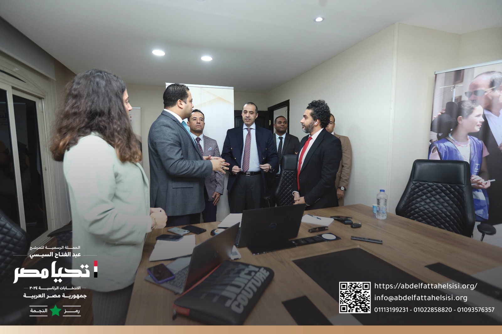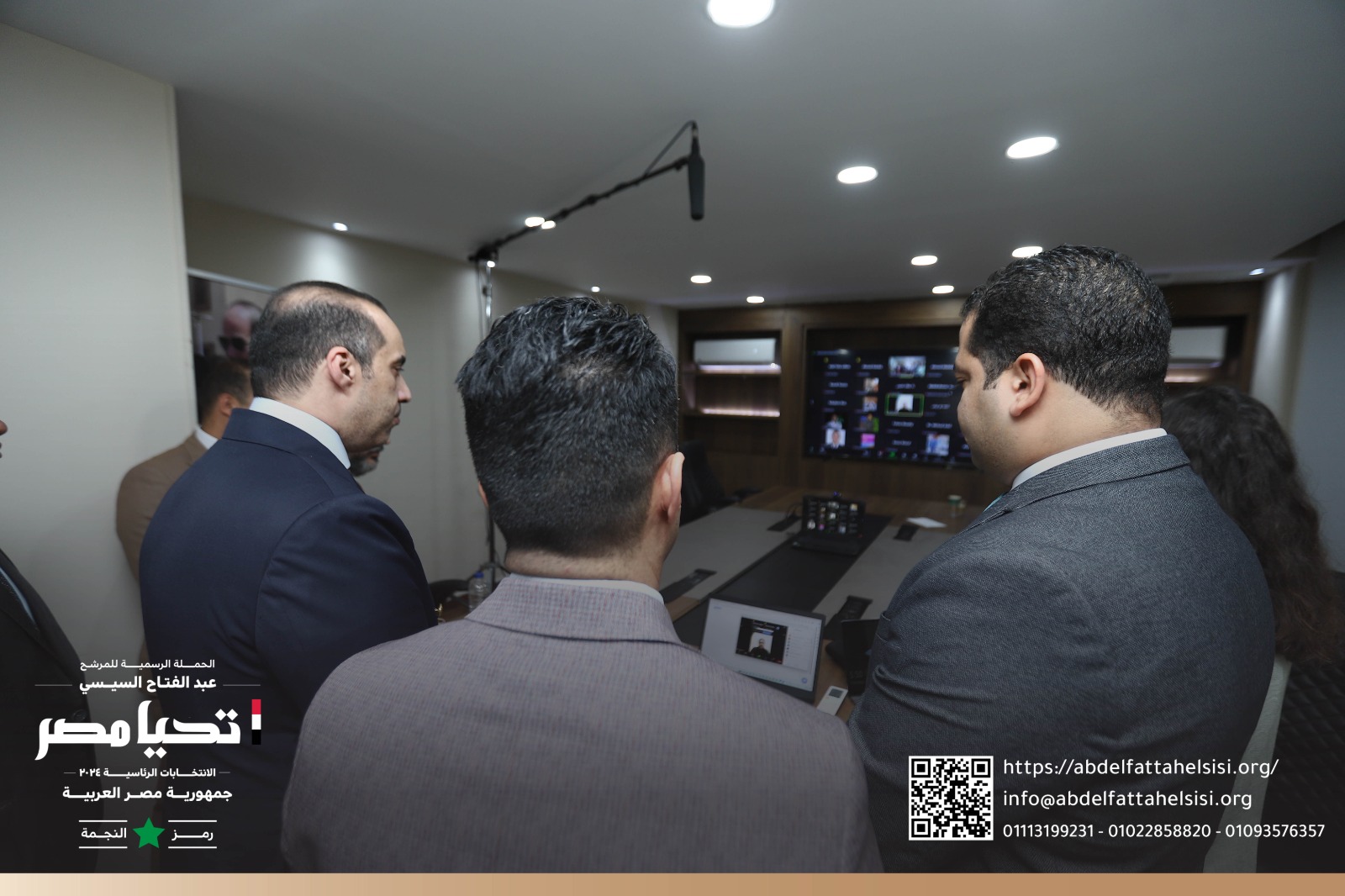 تفقد اليوم المستشار محمود فوزي، رئيس الحملة الانتخابية للمرشح الرئاسي عبد الفتاح السيسي، ووسام صبري، المدير التنفيذي للحملة، لقاء لجنة المتطوعين والكيانات والشبابية بالحملة الرسمية للمرشح الرئاسي، بممثلي الكيانات الشبابية في المحافظات عبر تقنية "الفيديو كونفرانس".