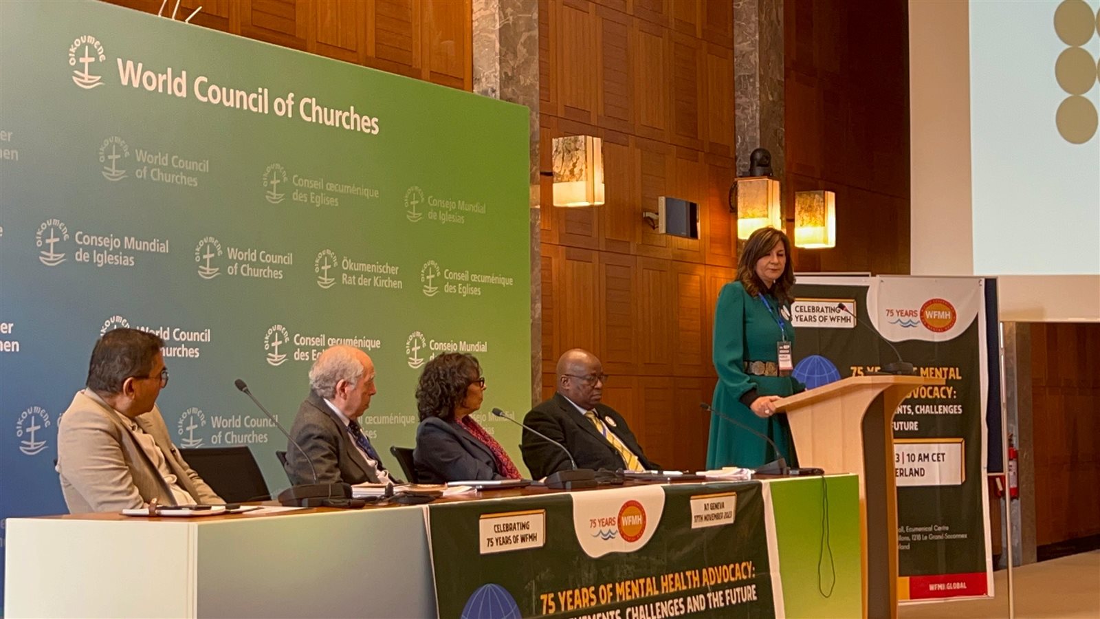 شهدت السفيرة نبيلة مكرم مؤسسة ورئيسة مجلس أمناء مؤسسة "فاهم" للدعم النفسي الحدث الخاص الذي نظمه الاتحاد العالمي للصحة النفسية (WFMH) في مقره الرئيسي بجنيف،للاحتفال بالذكرى السنوية الخامسة والسبعين لتأسيسه في عام 1948 بعنوان "75 عامًا من المناصرة للصحة النفسية: الإنجازات والتحديات والمستقبل"، شارك في الفعالية ممثل عن المنظمة الدولية للصحة العالمية، والدكتور ناصر لوزة رئيس الاتحاد العالمي للصحة النفسية والسفير د. أحمد ايهاب جمال الدين مندوب مصر الدائم لدى الأمم المتحدة في چنيف وممثلى الدول الأعضاء أكثر من ١٠٠ دولة.