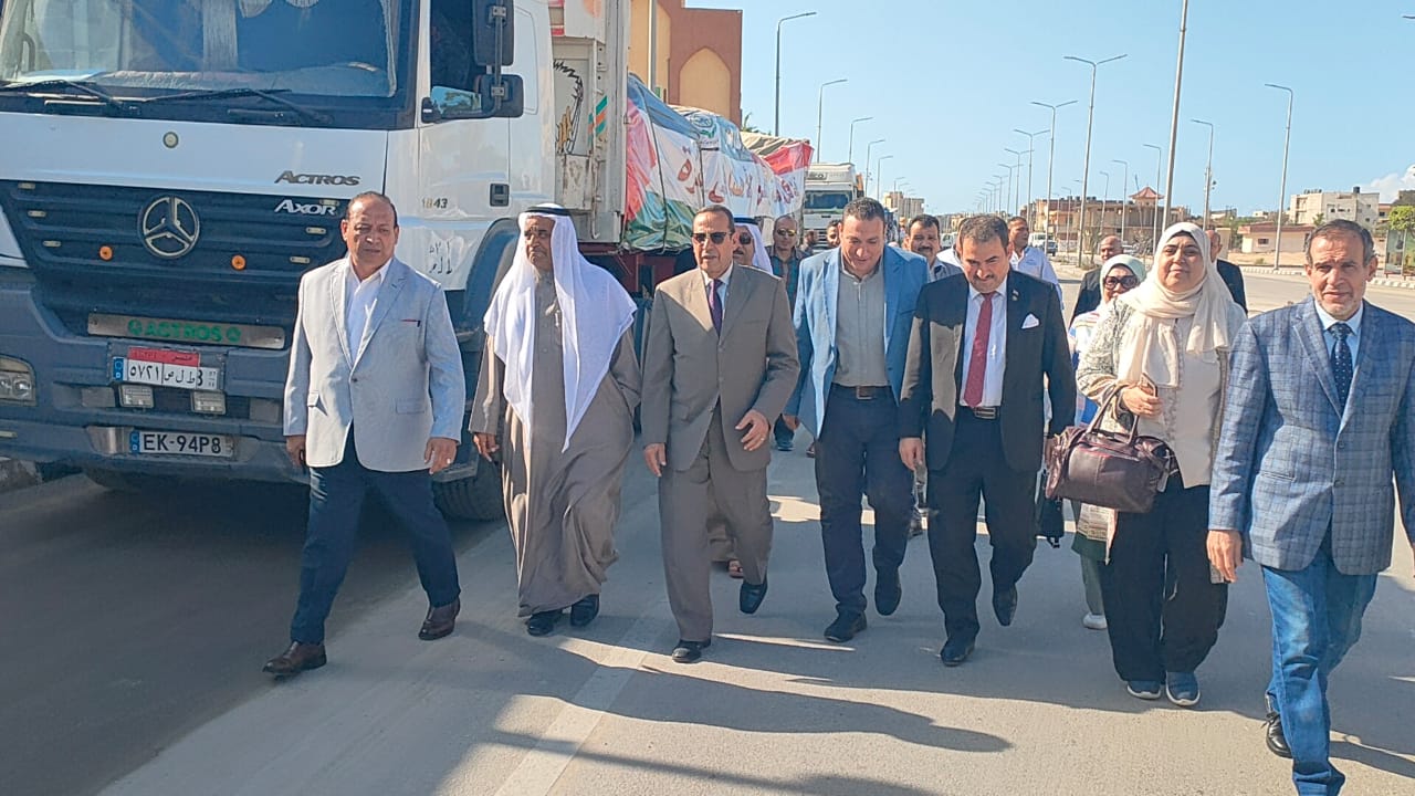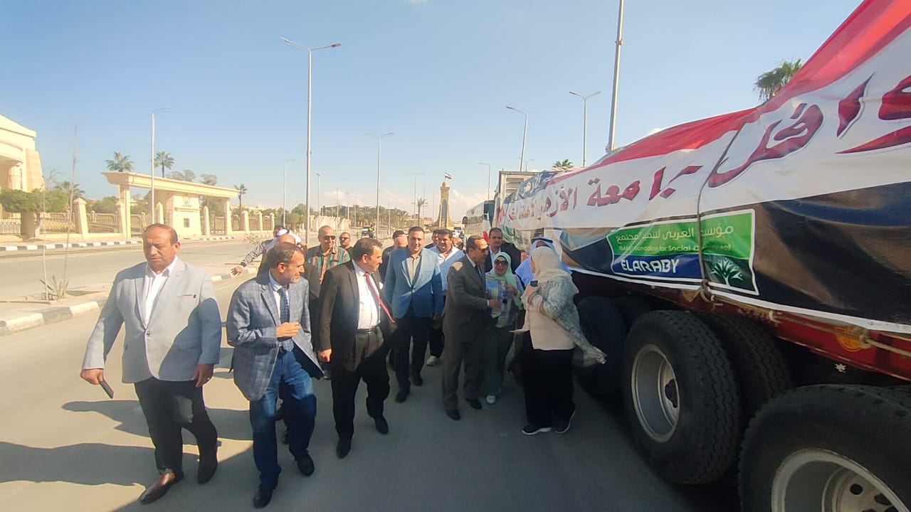 وأشار المحافظ أن القافلة تضم 10 شاحنات محملة بـ 290 طنًا من المواد الغذائية والمستلزمات الطبية والمواد الإغاثية، مقدمة من الازهر الشريف لدعم ابناء الشعب الفلسطيني.