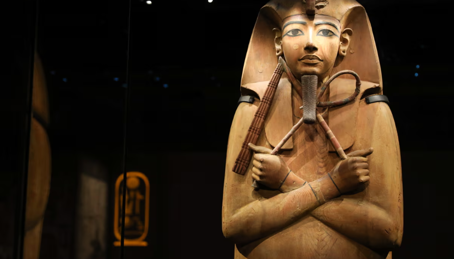 ويشمل المعرض تنوعا مذهلا من القطع الأثرية بما فى ذلك التوابيت، ومومياوات الحيوانات، والمجوهرات الرائعة، والأقنعة الملكية المذهلة، والتمائم الرائعة، والكنوز الذهبية المزخرفة للمقبرة، والتي تعرض المهارة الرائعة للحرفيين المصريين.