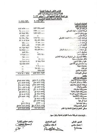 3- اعتماد الميزانية والحساب الختامي للسنة المالية المنتهية في30/6/2023 ومشروع الموازنة المقترح للعام المالى المقبل 2023/2024.