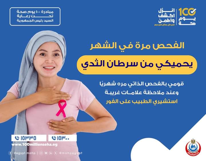 الصحة تنصح السيدات بإجراء الفحص الذاتي للثدي شهريا
