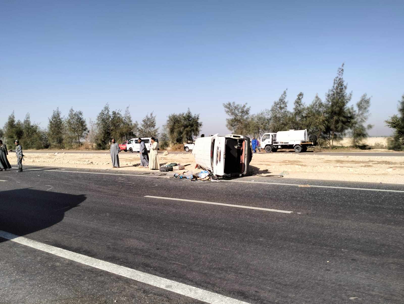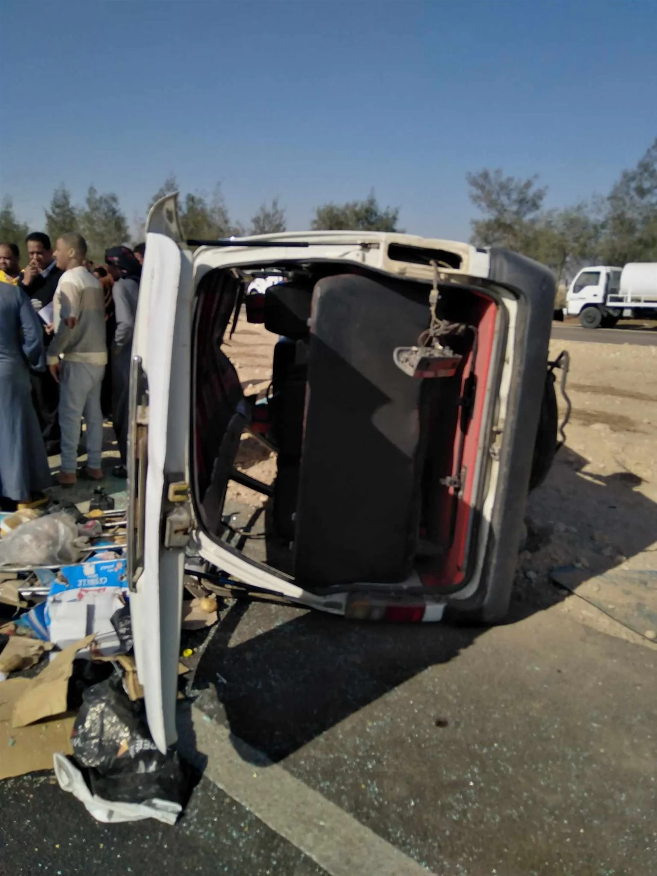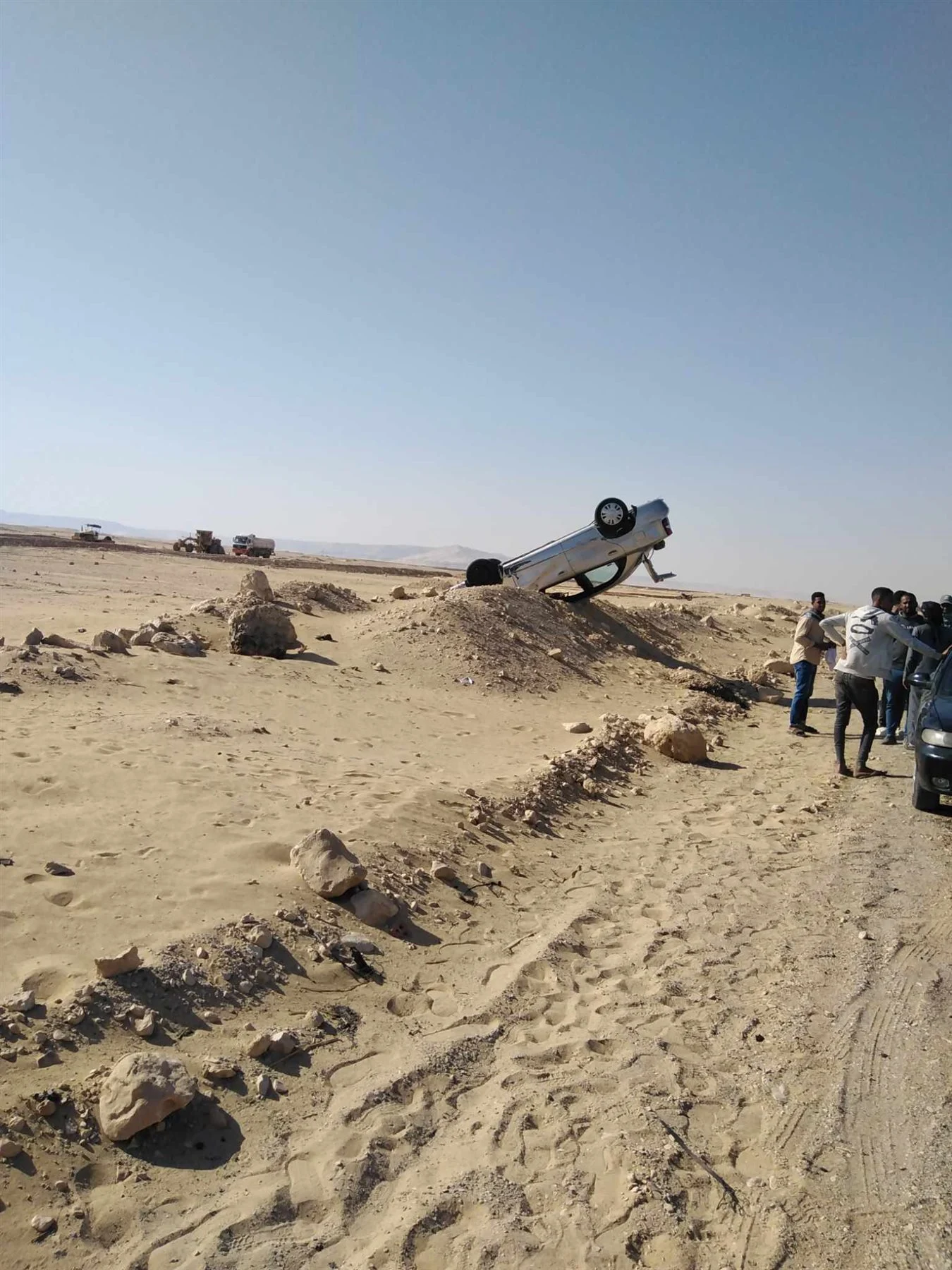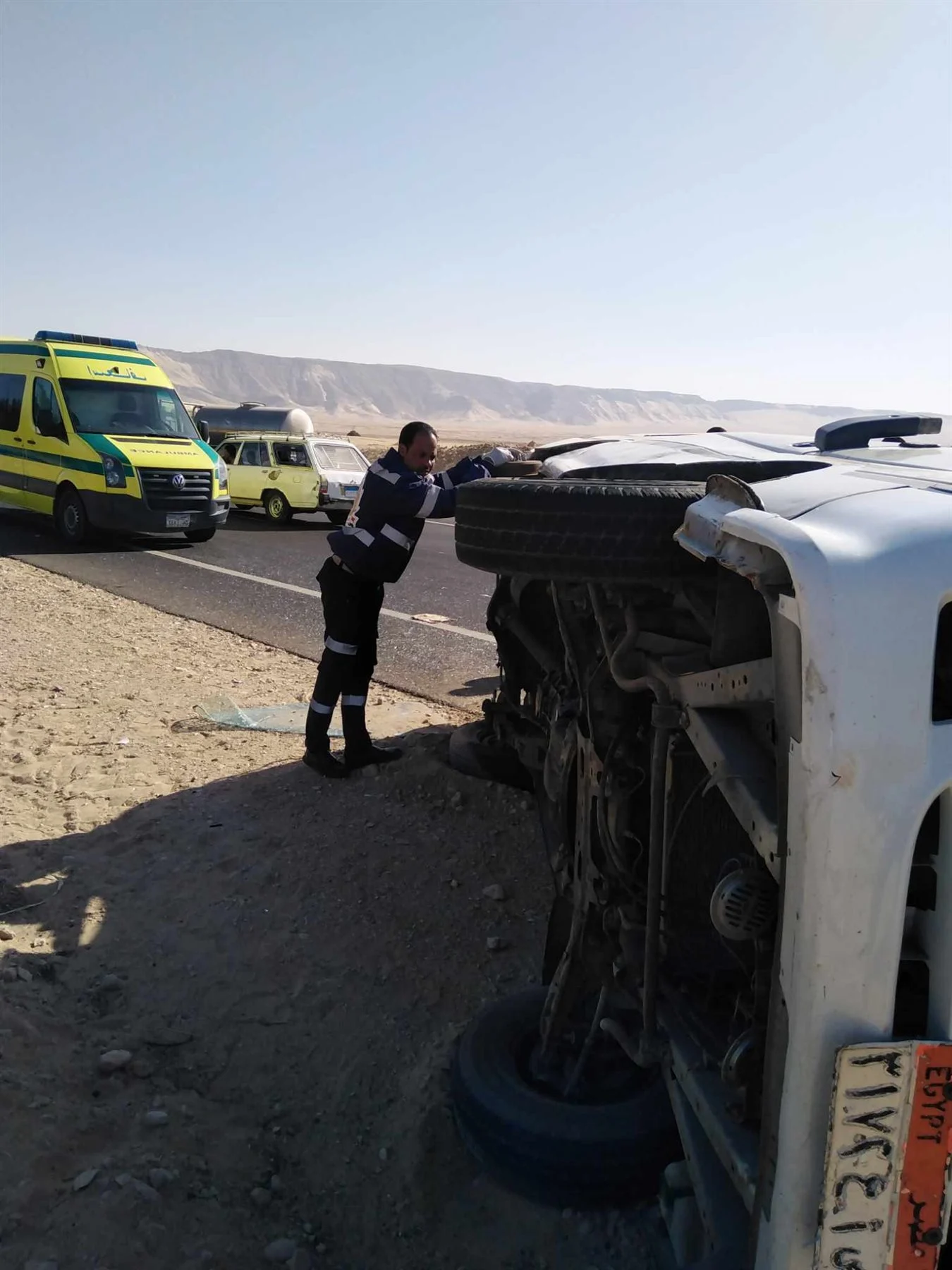 حادث مروع على طريق قنا الصحراوى وتصادم سيارتين وانقلابهما (صور)