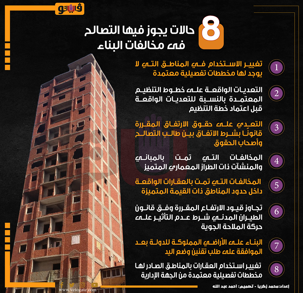 8 حالات يجوز فيها التصالح فى مخالفات البناء (إنفوجراف) الأحد 19/نوفمبر/2023 - 05:26 م 11/19/2023 5:26:00 PM حالات التصالح مخالفات البناء، فيتو محمد زكريا شارك طباعة 18 حجم الخط شارك طباعة التصالح فى مخالفات البناء الطيران المدني الطراز المعماري تصالح في مخالفات البناء حركة الملاحة الجوية قانون التصالح في مخالفات البناء قانون الطيران المدنى قانون التصالح قانون الطيران مخالفات البناء