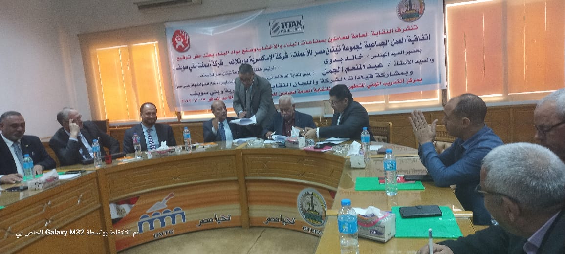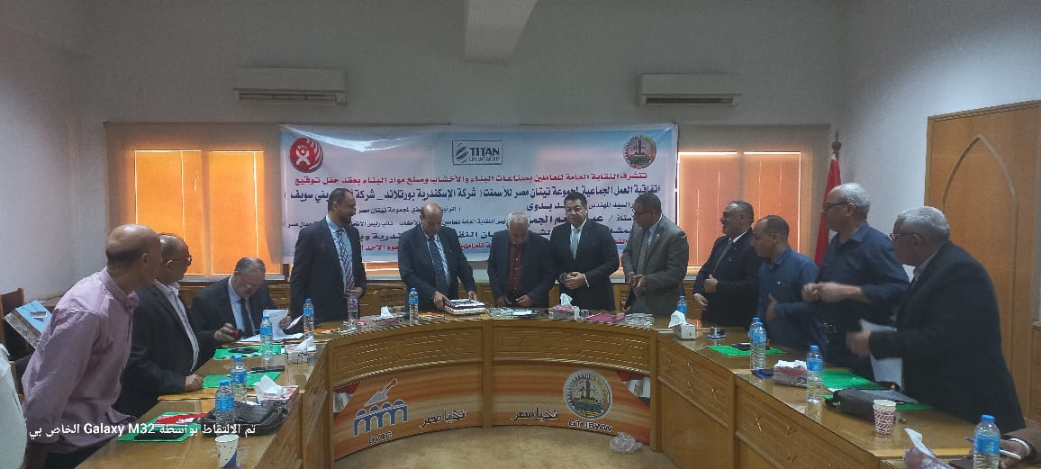 وقعت النقابة العامة للعاملين بالبناء والأخشاب، برئاسة عبد المنعم الجمل، نائب رئيس الاتحاد العام لنقابات عمال مصر، اتفاقية العمل الجماعية لمجموعة تيتان مصر للأسمنت "شركة الإسكندرية بورتلاند _ أسمنت بني سويف" بمركز التدريب المهني المتطور التابع للنقابة العامة.