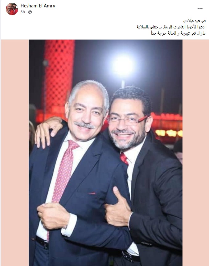 في البداية كشف هشام العامري، شقيق العامري فاروق عن الحالة الصحية لـ العامري فاروق، فقال: "في عيد ميلادي ادعوا لأخويا العامري فاروق يرجعلي بالسلامة مازال في غيبوبة والحالة حرجة جدًا"