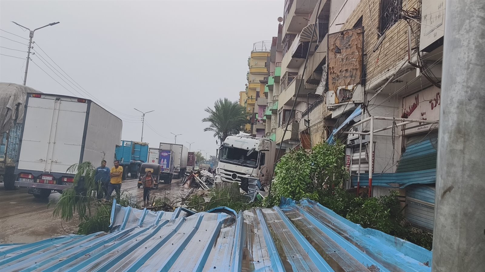 شهد طريق ميت غمر المنصورة حالة من الشلل المروري بسبب سقوط عامود إنارة وشجرة على سيارة نقل أثناء مرورها بنطاق قرية نقيطة التابعة لسلكا مركز المنصورة نتيجة التقلبات الجوية.