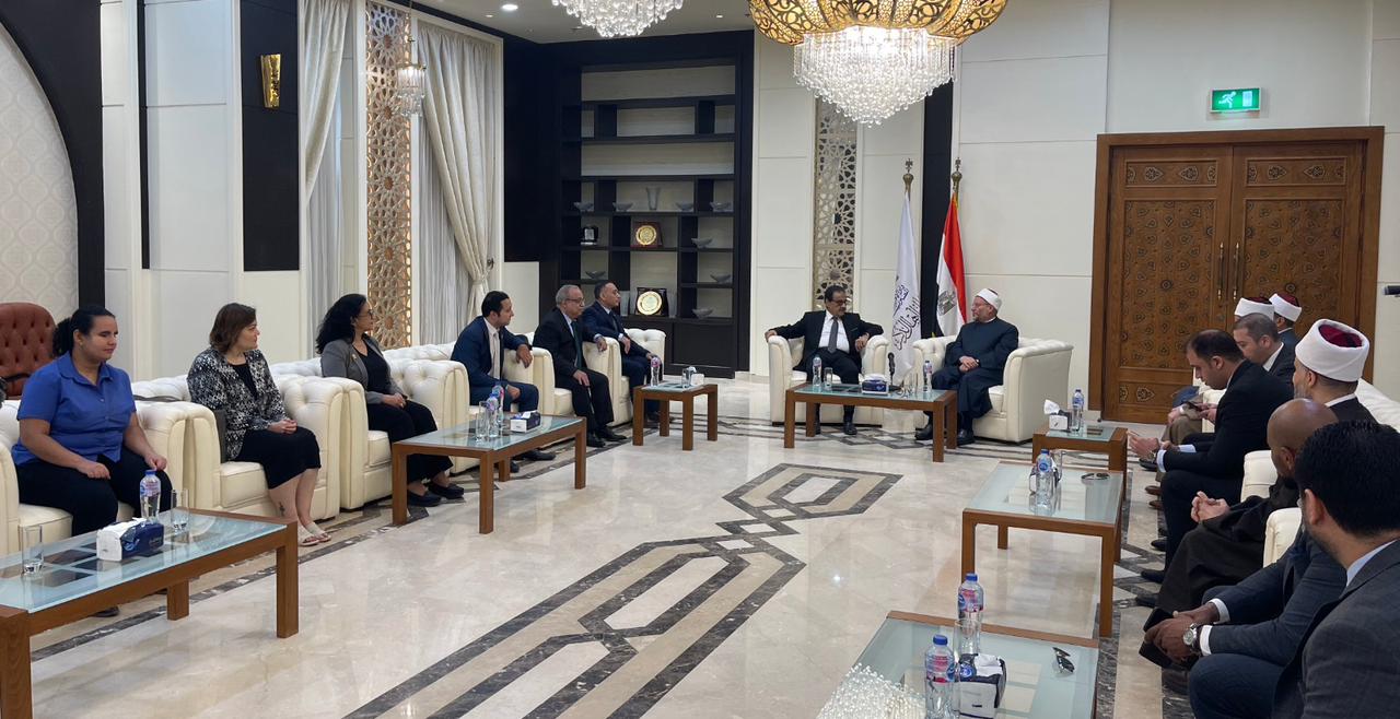استقبل الدكتور شوقي علام، مفتي الجمهورية، رئيس الأمانة العامة لدور وهيئات الإفتاء في العالم، اليوم الأحد، المرشح الرئاسي فريد زهران -رئيس الحزب المصري الديمقراطي الاجتماعي- وحملته الانتخابية، في مقر دار الإفتاء المصرية.