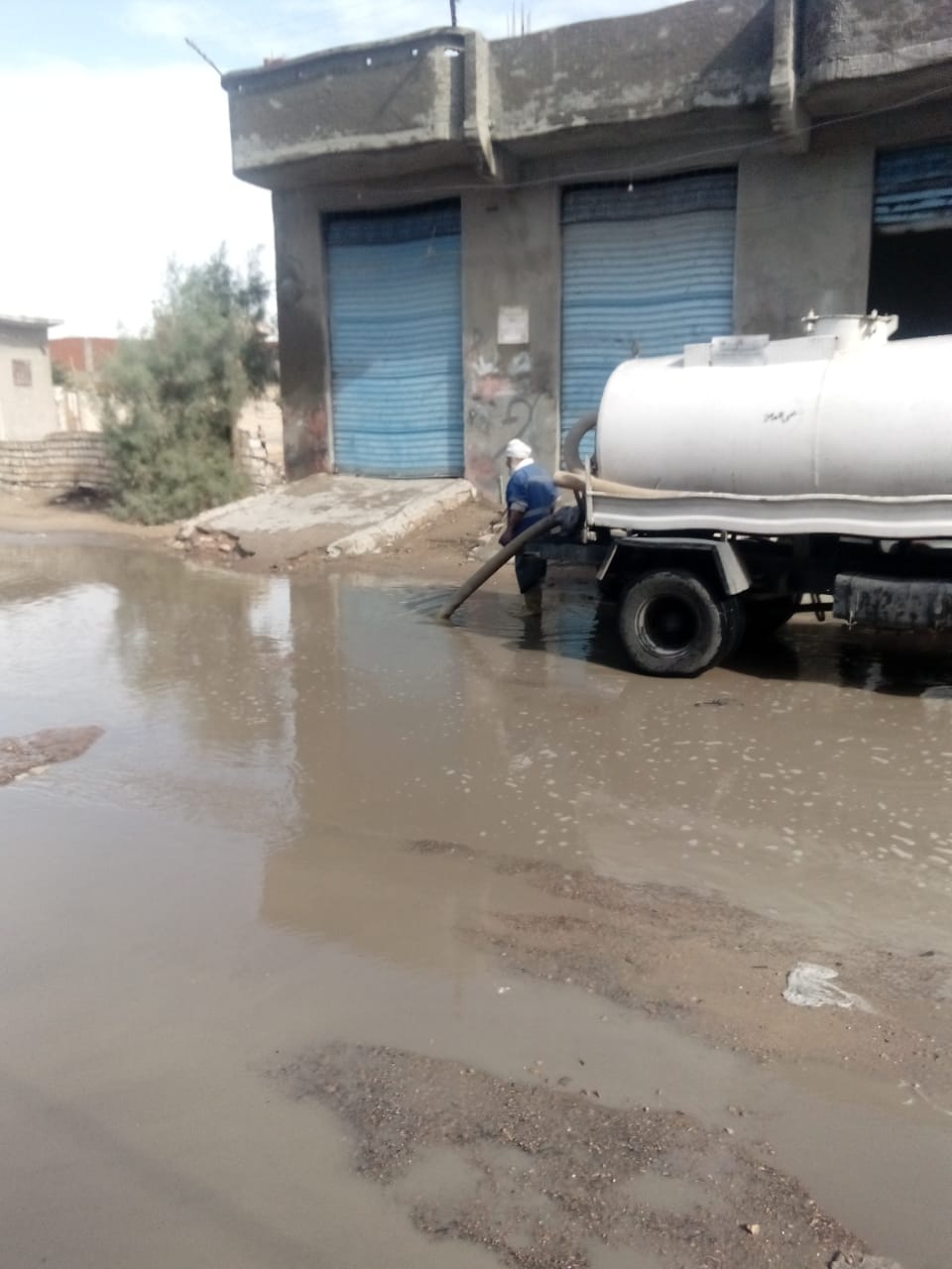 ،كسح تجمع مياه أمطار بمدخل اكتوبر