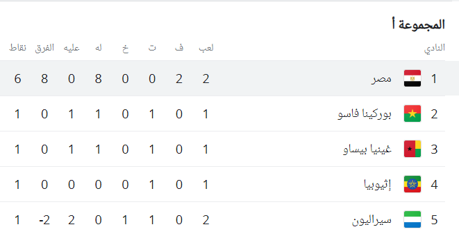 ترتيب مجموعة منتخب مصر بعد الفوز على سيراليون