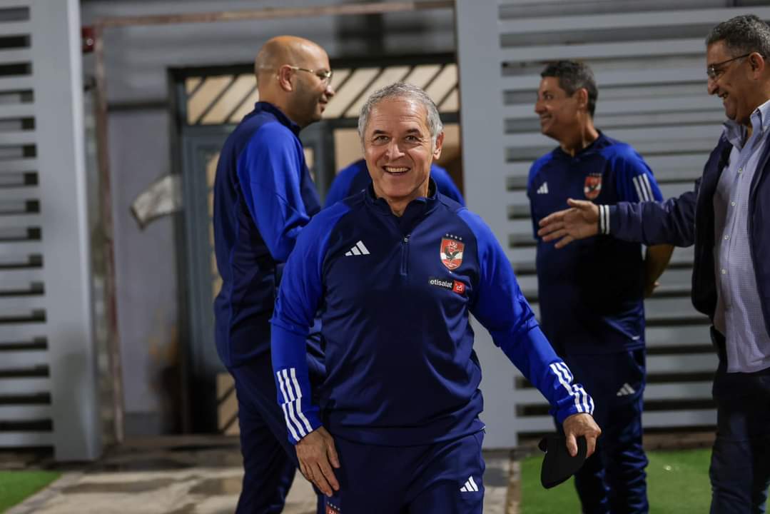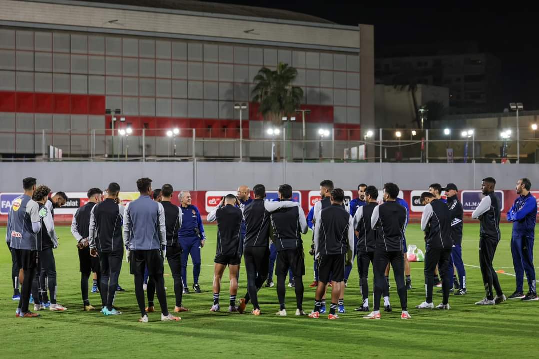 وبدأ المران بمحاضرة فنية من مارسيل كولر المدير الفني للنادي الأهلي للاعبين للحديث في العديد من الأمور الفنية.