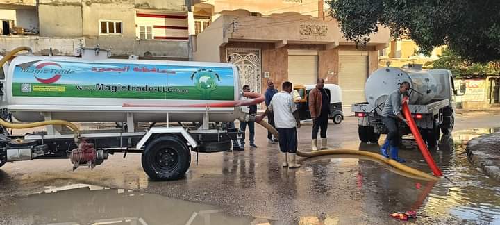حيث قامت الوحدات المحلية باستمرار عمليات رفع تراكمات الأمطار لليوم الثاني على التوالي من الشوارع الرئيسية، والفرعية، والميادين، من خلال فرق وأطقم مجابهة الأزمات بالوحدات المحلية والحماية المدنية وشركة مياه الشرب.