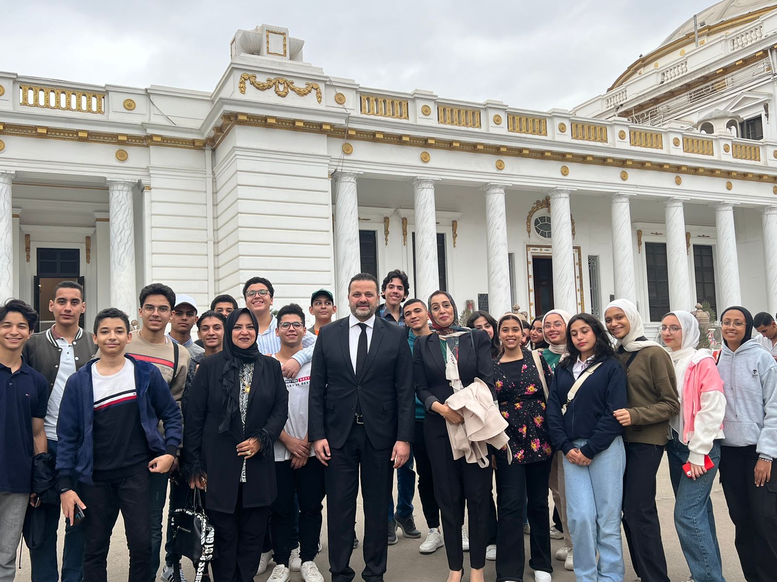 وذلك بدعوة كريمة من النائبة الدكتورة نسرين عمر رئيس لجنة التعليم بمجلس النواب، وتفقد الطلاب أروقة مبنى المجلس التاريخي الذي تأسس عام 1923