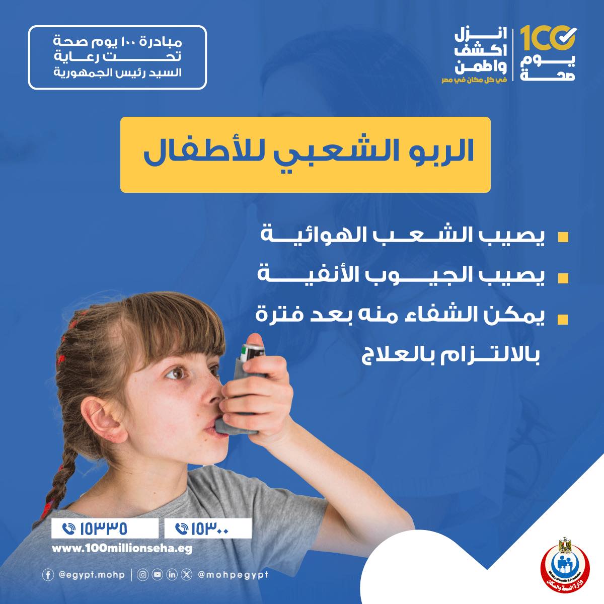 وأكدت وزارة الصحة ان الربو الشعبي للأطفال يصيب الشعب الهوائية ويصيب الجيوب الانفية ويمكن الشفاء منه بعد فترة من تناول العلاج