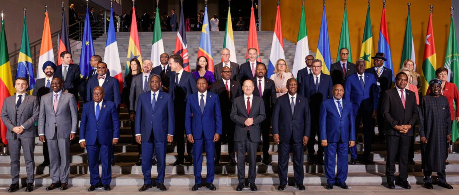 وشارك في القمتين المستشار الألماني أولاف شولتز، والرئيس إيمانويل ماكرون، رئيس الجمهورية الفرنسية، إلى جانب عدد من زعماء ورؤساء الدول الأفريقية، من بينهم رؤساء دول كوت ديفوار، ونيجيريا، والسنغال، وكينيا، ورئيس وزراء المملكة المغربية، وكذلك أزلي أصومامي، رئيس الاتحاد الإفريقي، ورئيس وزراء هولندا، إلى جانب رؤساء مؤسسات التمويل الدولية، من بينهم صندوق النقد الدولي، ومجموعة البنك الدولي، والبنك الأفريقي للتنمية، ورئيس الاتحاد الأوروبي، ورئيسة المفوضية الأوروبية، وتوماس شافر، رئيس مؤسسة زافري الألمانية.