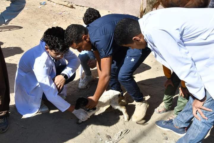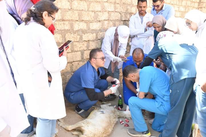 قافلة بيطرية بقرى العبور بالخارجة لكلية الطب البيطري بجامعة الوادي الجديد