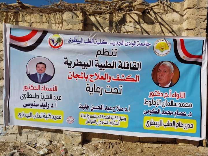 يذكر أن القافلة برعاية الدكتور عبدالعزيز طنطاوي رئيس جامعة الوادي الجديد، والدكتور مصطفى محمود المشرف على قطاع خدمة المجتمع وتنمية البيئة بالجامعة والدكتور وليد سنوسى عميد كليه الطب البيطري، والدكتور صلاح جلبط وكيل كلية الطب البيطري لخدمة المجتمع وشئون البيئة.