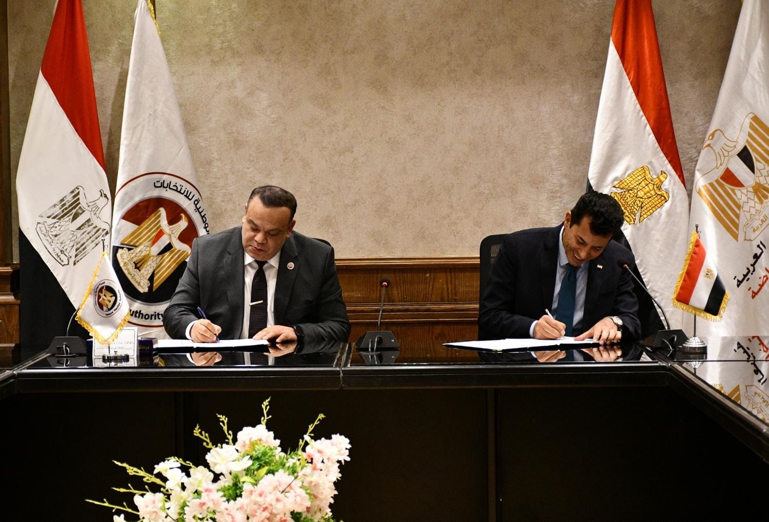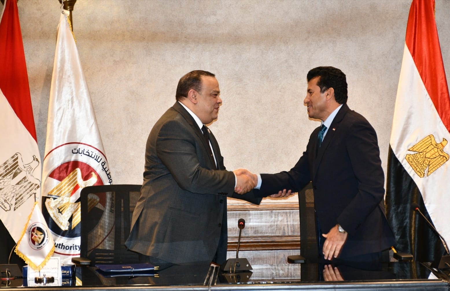 أشرف صبحي يشهد توقيع بروتوكول تعاون مع الهيئة الوطنية للانتخابات للتوعية بالمشاركة