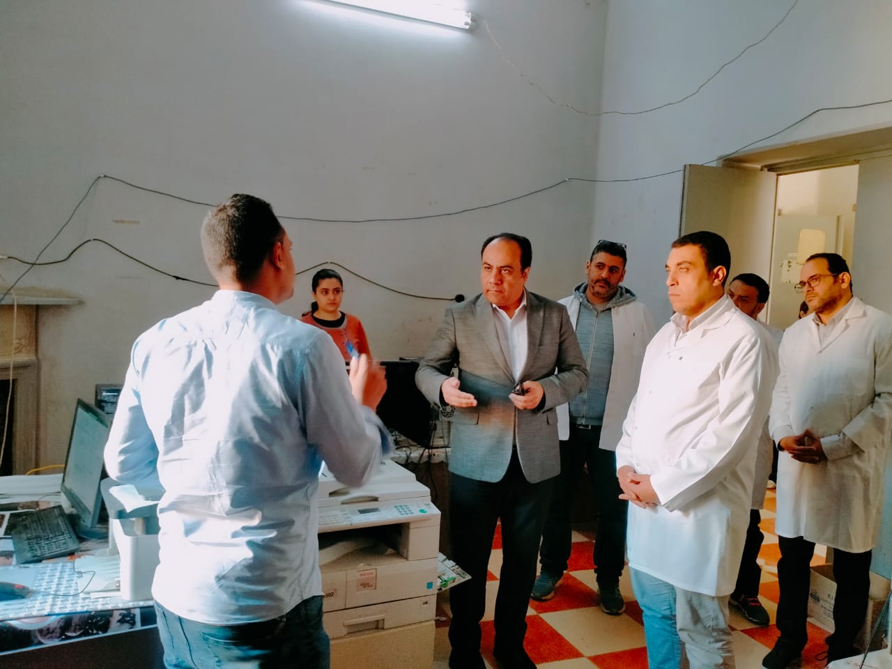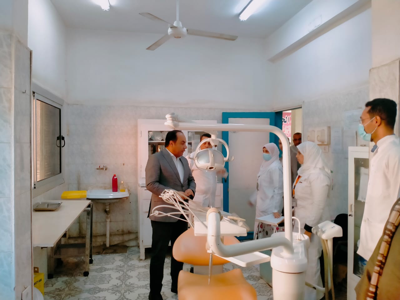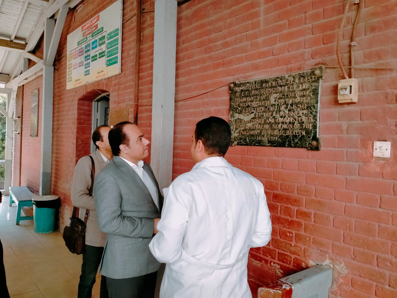 وتفقد سير العمل بالعيادات المختلفة لأمراض العيون وعيادات الأسنان وكذلك تفقد عيادة قياس النظر والصيدلية والعمليات الصغرى والكبرى والمبنى الإداري.
