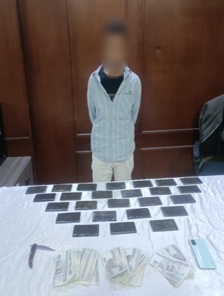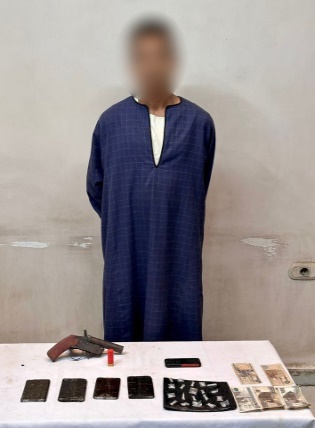 ضبط (عاطل "له معلومات جنائية" – مقيم بدائرة مركز شرطة إسنا)، وبحوزته (2 كيلو جرام لمخدر الحشيش – كمية لمخدر الشابو – فرد محلى وطلقة) وتم إتخاذ الإجراءات القانونية.