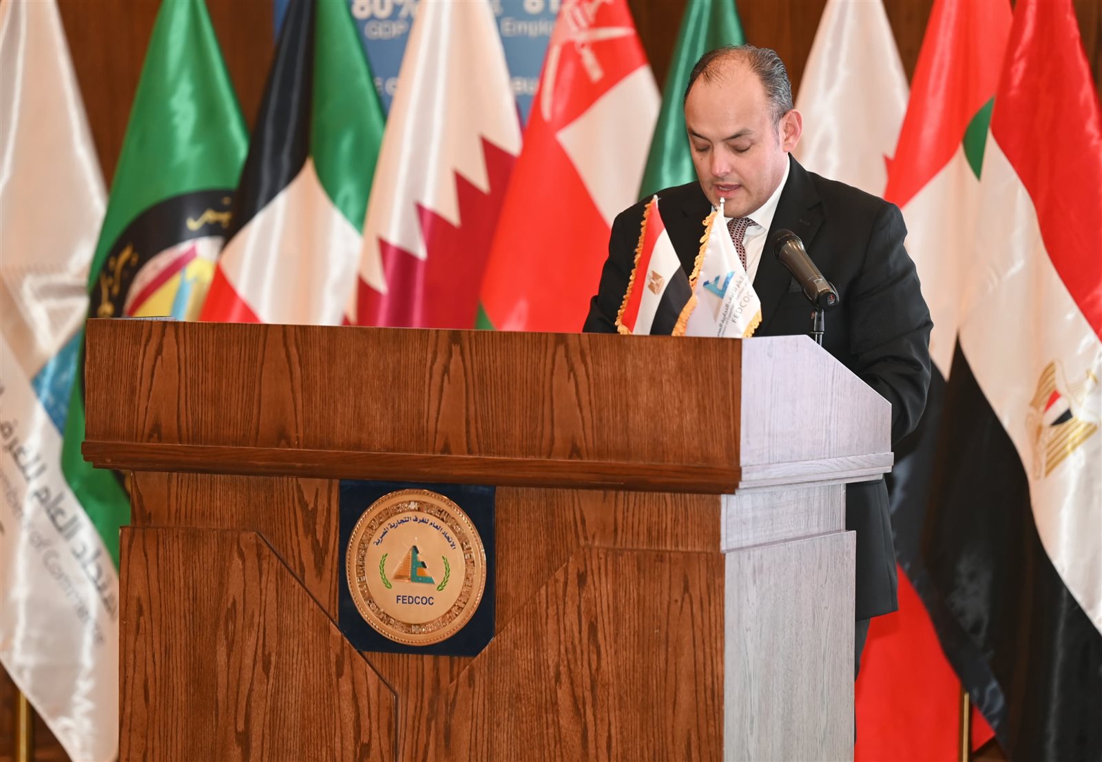 وخلال كلمته، أكد أحمد الوكيل رئيس الاتحاد العام للغرف التجارية المصرية، أهمية تحقيق التكامل بين الدول العربية من خلال التصنيع المشترك والتصدير لأسواق إفريقيا والاتحاد الأوروبي وغيرها من المناطق والتكتلات الاقتصادية التي ترتبط مع مصر باتفاقيات تجارة حرة، خاصة أن مصر لا طالما فتحت ذراعيها أمام الشركاء كافة من مختلف دول العالم وبالأخص الأشقاء من دول مجلس التعاون الخليجي، وذلك من خلال تعاون مثمر بين اتحادات الغرف في هذه الدول.