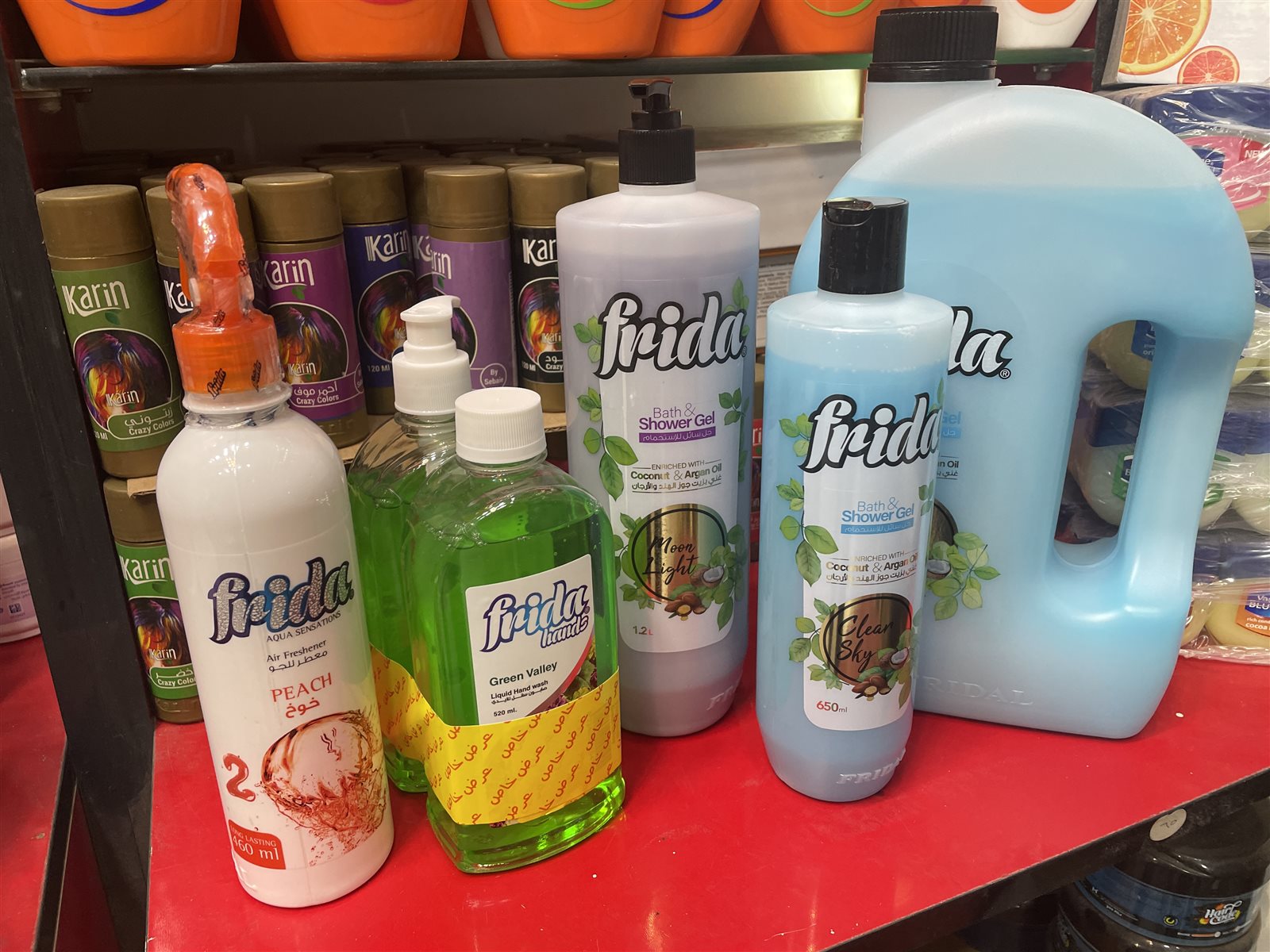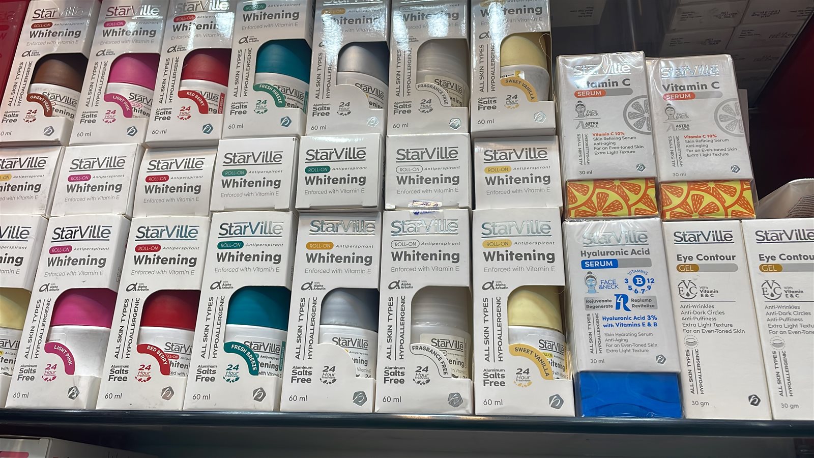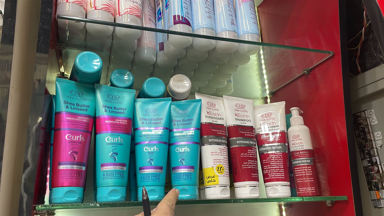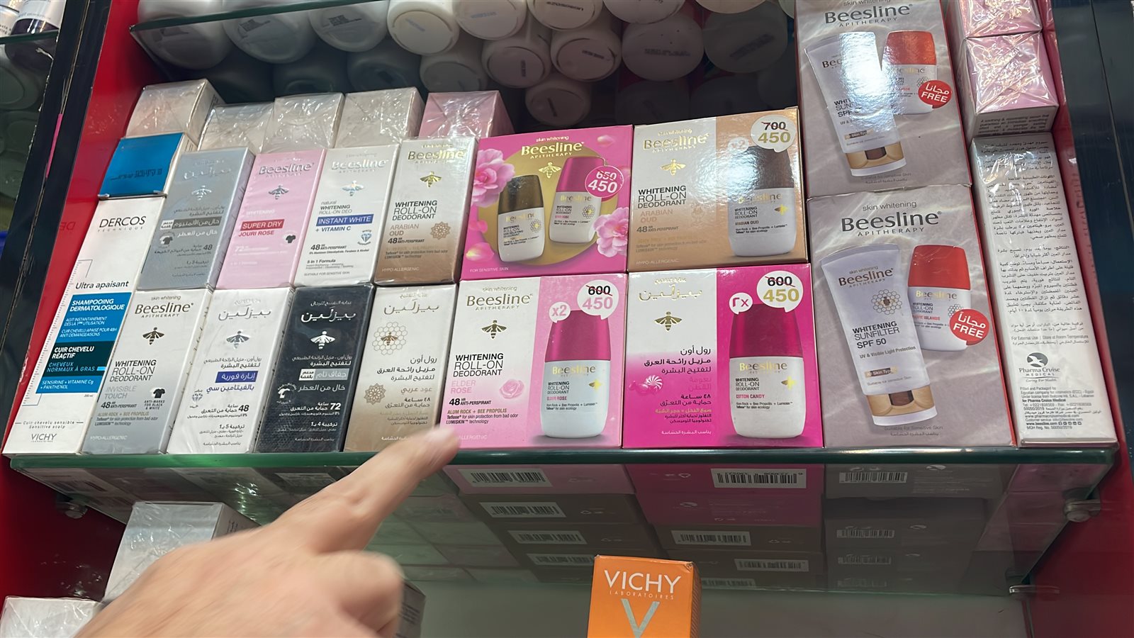 وتتنوع مستحضرات التجميل والعناية بالبشرة والجسم، ما بين مستحضرات المكياج، ومنتجات العناية بالبشرة والجسم مثل كريمات التفتيح وغسول البشرة والجسم، يضاف إلى ذلك شاور جل أو غسول الاستحمام، والشامبو.