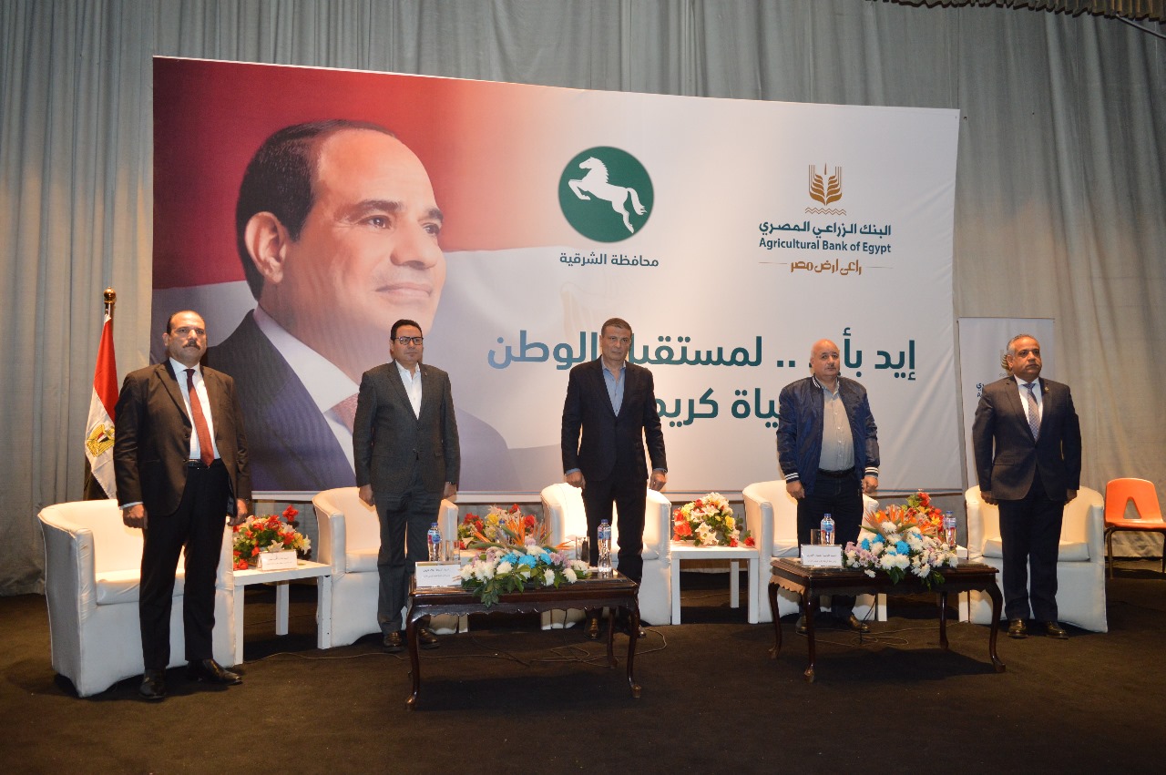 حيث قام البنك بتنظيم مؤتمرًا جماهيريًا بقاعة مؤتمرات جامعة الزقازيق لتنفيذ أهداف مبادرة (إيد بأيد.. لمستقبل الوطن) لدعم الأسر الأكثر احتياجًا في محافظة الشرقية، وذلك بحضور الأستاذ علاء فاروق رئيس مجلس إدارة البنك الزراعي المصري، والنائب هشام الحصري رئيس لجنة الزراعة والري بمجلس النواب، والنائب محمد سليم عضو مجلس الشيوخ الأمين العام لحزب مستقبل وطن بالشرقية، والأستاذ سامي معجل السكرتير العام المساعد لمحافظة الشرقية، والأستاذ يسري الشرقاوي رئيس جمعية رجال الأعمال المصريين الأفارقة.