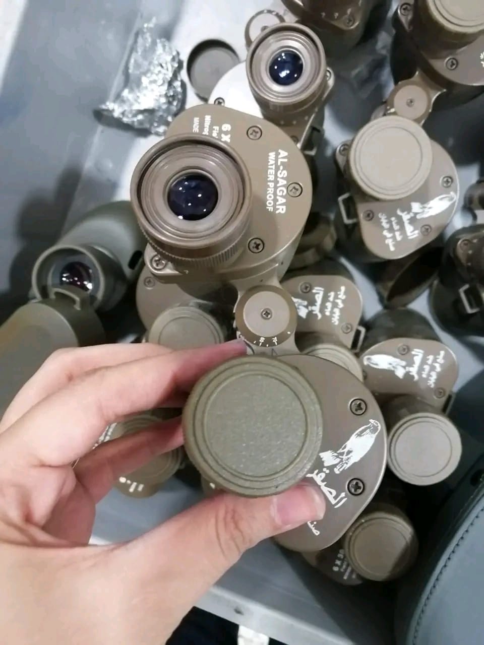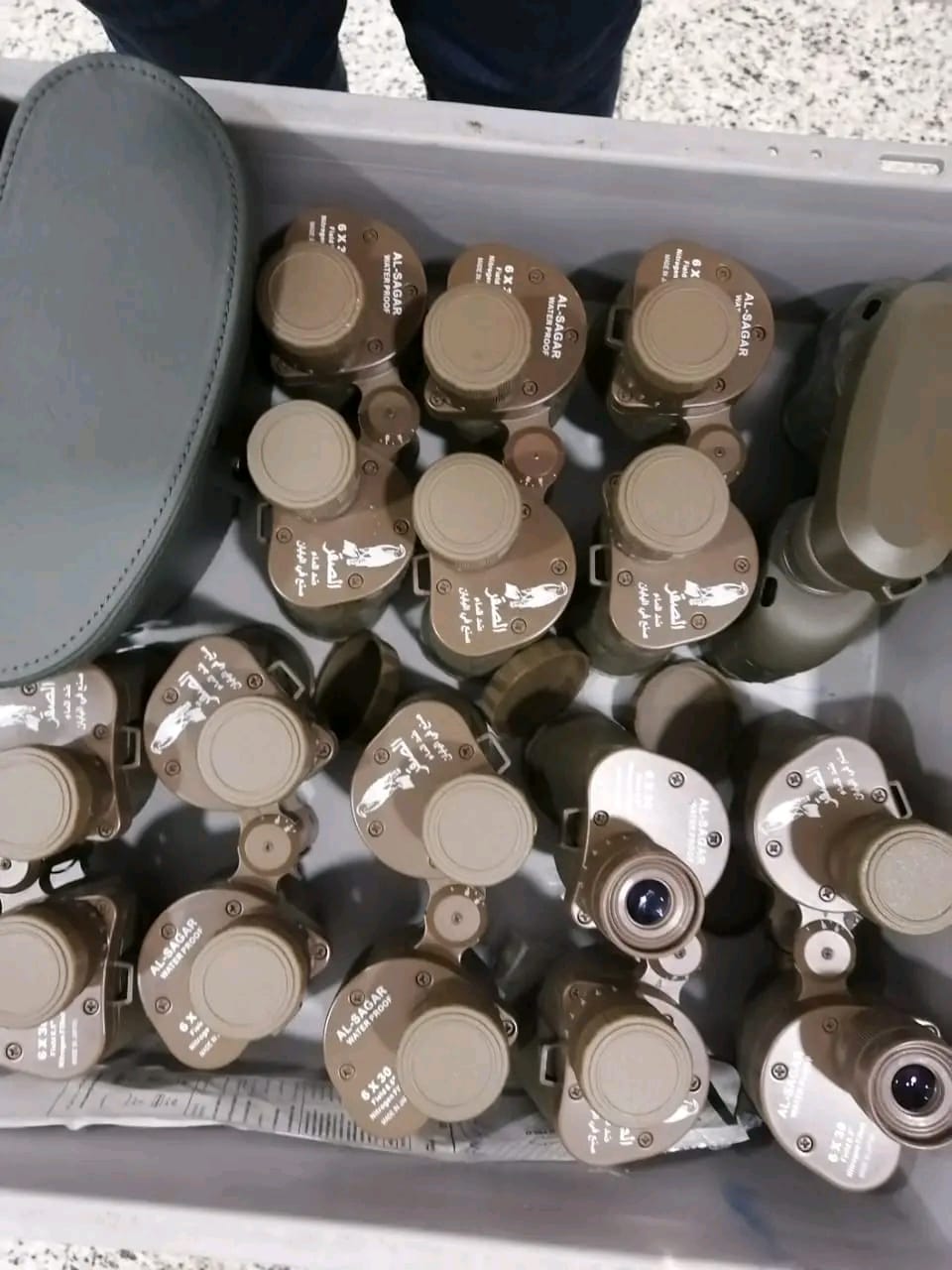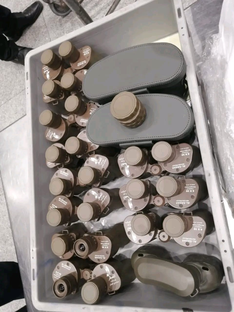 وبالعرض علي سعد عبادي مدير إدارة الجمرك قام بتشكيل لجنة لتفتيش حقائب الراكب وكذا تفتيش الراكب ذاتيا مكونة من أحمد جمال مأمور حركة ومحمد علي الجوهري مفتش مكافحة التهرب الجمركى وجهاد جلال بالأمن الجمركي فتبين وجود 12 منظارا مقربا مزدوج العين (نظارة معظمة)
