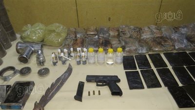 وعقب تقنين الإجراءات تم ضبطهما وبحوزتهما 360 طربة لمخدر الحشيش تزن 36 كيلو جرام و5 كيلو جرامات لمخدر الهيروين و3 كيلو جرامات لمخدر الهيدرو و2,250 كيلو جرام لعجينة مخدر الحشيش وكمية من المواد والخامات والأدوات المستخدمة فى عملية التصنيع وطبنجة وعدد من الطلقات وسلاح أبيض و2 ميزان حساس.