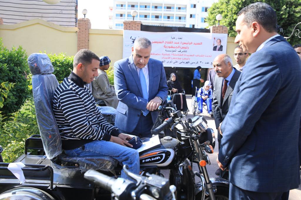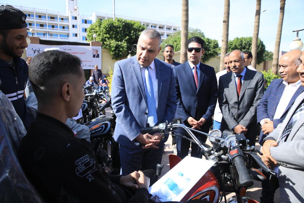 محافظ سوهاج يسلم 26 موتوسيكل وكرسي كهربائي لذوي الهمم