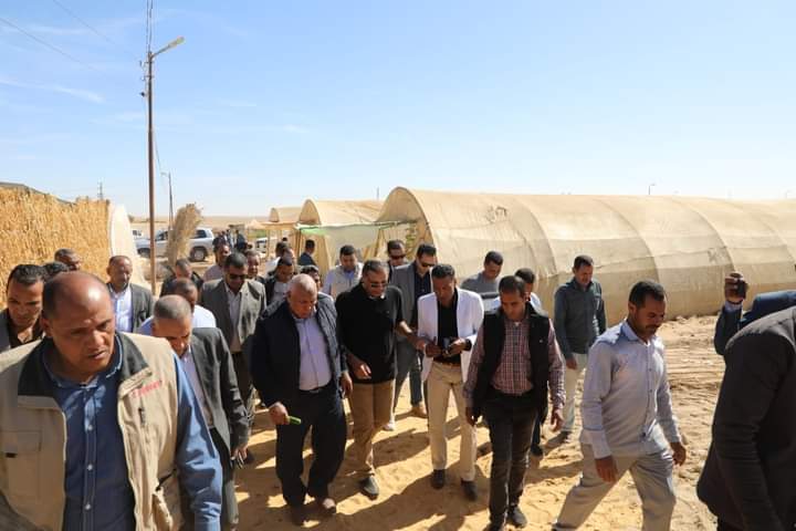 وتم تفقد صوب الخضروات المُقامة على مساحة ٢ فدان بإجمالي ٢٢ صوبة تشمل زراعات (خيار - طمطاطم - فلفل - كوسا - بصل)