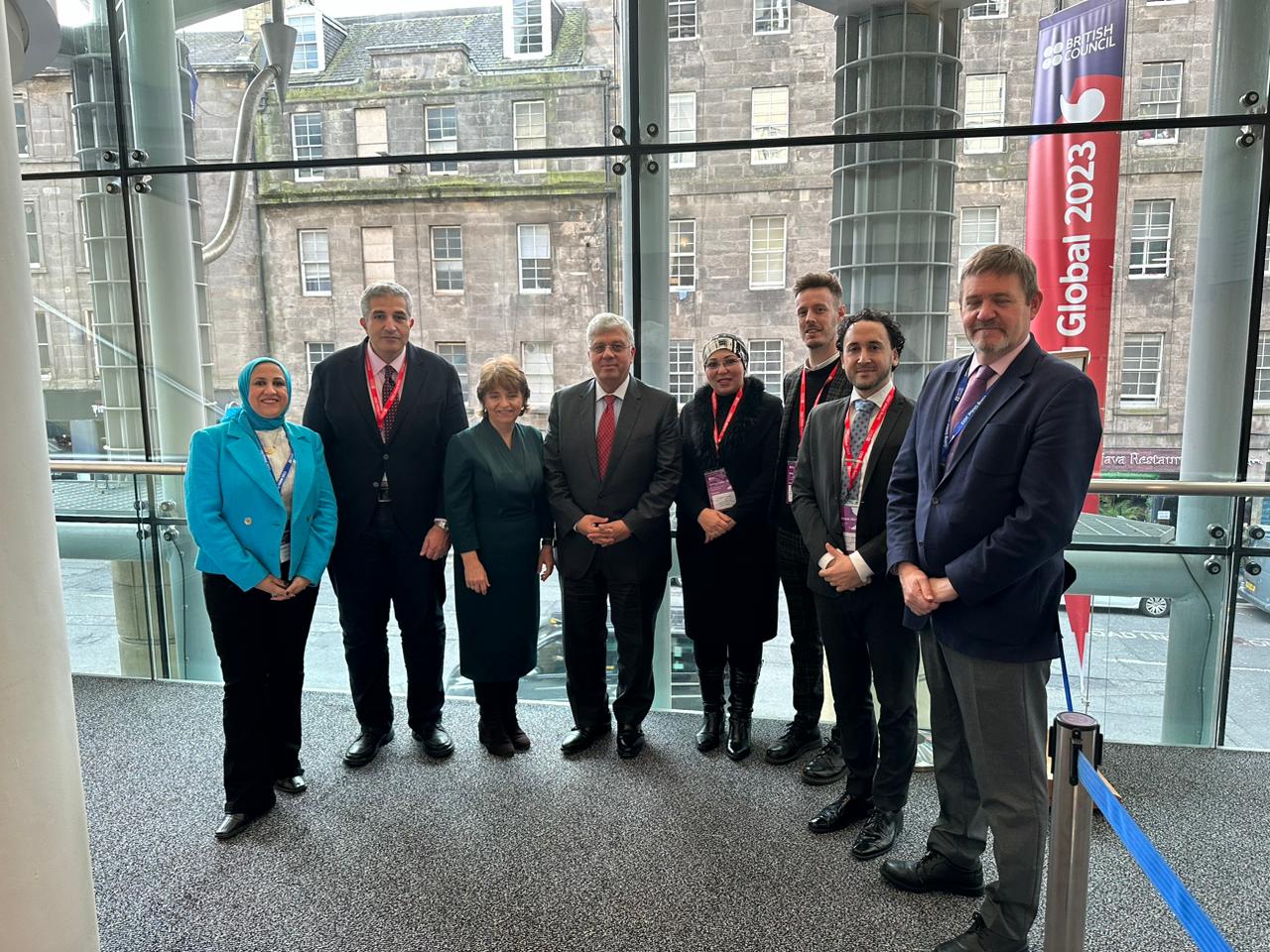 التقى الدكتور أيمن عاشور وزير التعليم العالي والبحث العلمي مع سكوت ماكدونالد الرئيس التنفيذي للمجلس الثقافي البريطانى، والبروفسيور جوديث لامى نائب رئيس جامعة سوينسى للعلاقات الدولية، والبروفسيور سير انتون مسقاطيلى رئيس جامعة جلاسكو، وراشيل سانديسون نائب رئيس الجامعة للعلاقات الدولية؛ لبحث سُبل دعم التعاون التعليمي المشترك بين الجامعات المصرية والبريطانية.