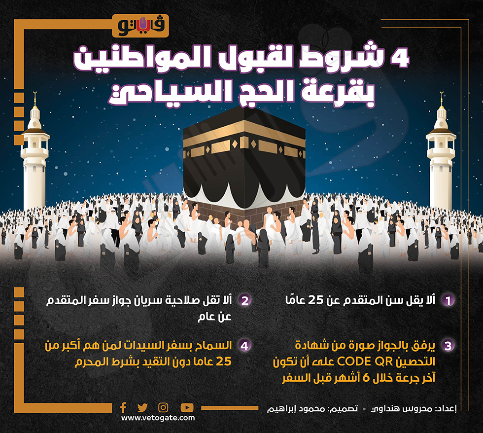4 شروط لقبول المواطنين بقرعة الحج السياحي (إنفوجراف) السبت 25/نوفمبر/2023 - 10:00 م 11/25/2023 10:00:35 PM مناسك الحج، فيتو محروس هنداوي شارك طباعة 18 حجم الخط شارك طباعة الحج الحج السياحى أسعار برامج الحج السياحي أسعار برامج الحج السياحي للمستوى البري شروط القبول بقرعة الحج السياحي اسعار الحج السياحي