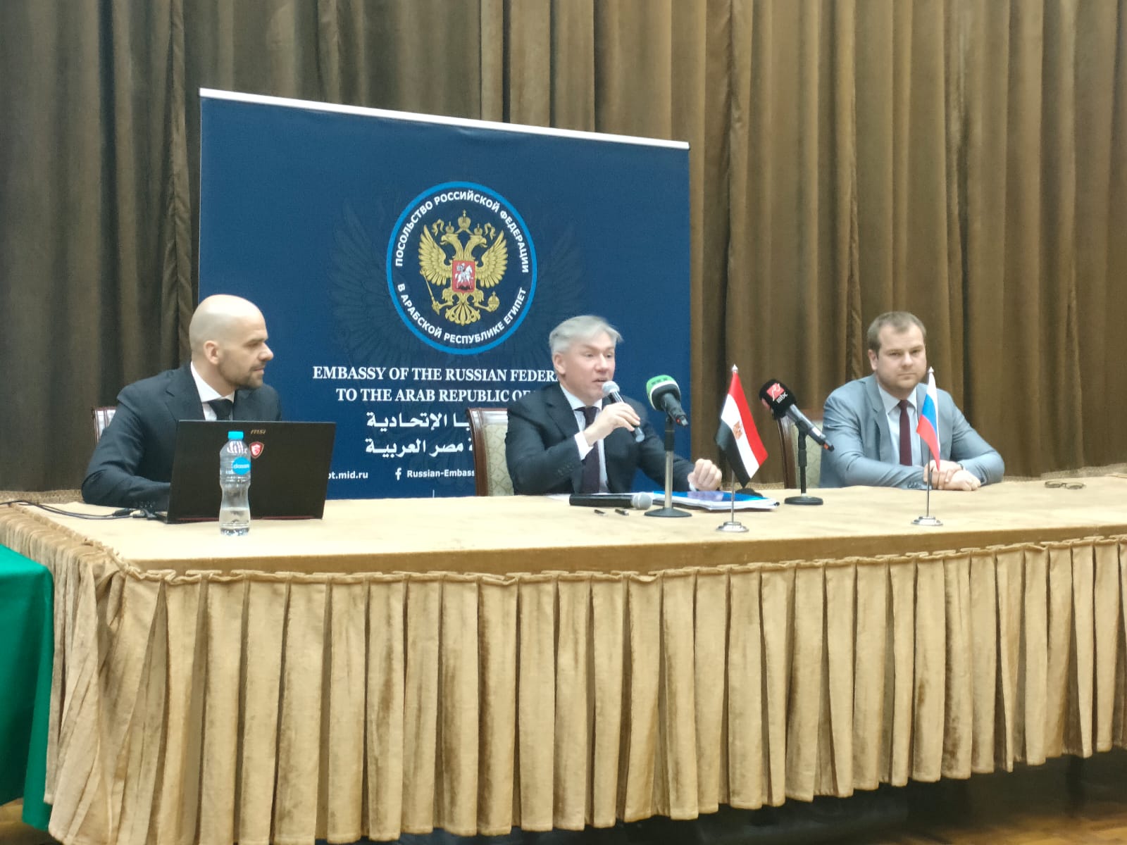 عقد المؤتمر الصحفي للمدير العام للجنة المنظمة لبطولة الصداقة العالمية أليكسي سوروكين، اليوم السبت، في مقر السفارة الروسية بالقاهرة.