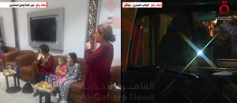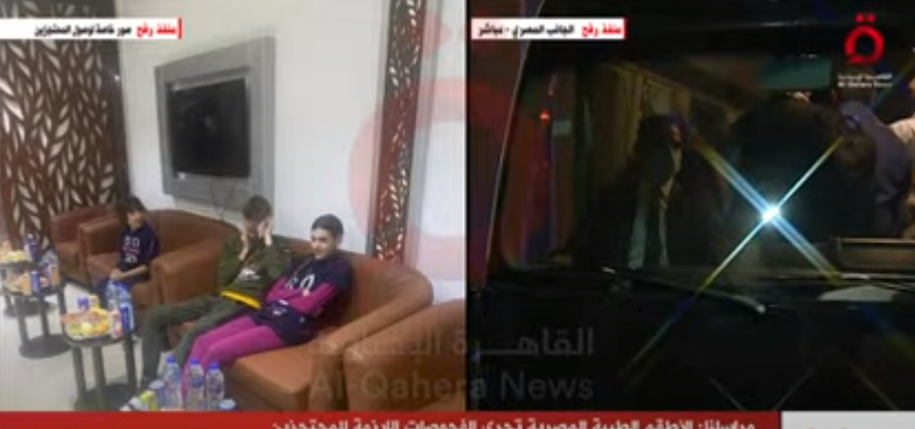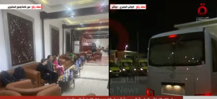 وعرضت "القاهرة الإخبارية" صورا خاصة لوصول المحتجزات الإسرائيليات، وبرفقتهن عدد من الأطفال.