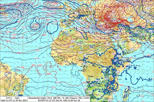 وتوقعت سقوط أمطار خفيفة إلى متوسطة على مناطق من السواحل الشمالية وشمال الوجه البحري على فترات متقطعة، موضحة أن هناك اضطراب في حركة الملاحة البحرية على البحر الأبيض المتوسط ليصل ارتفاع الموج من ( ٣_ ٥) أمتار.
