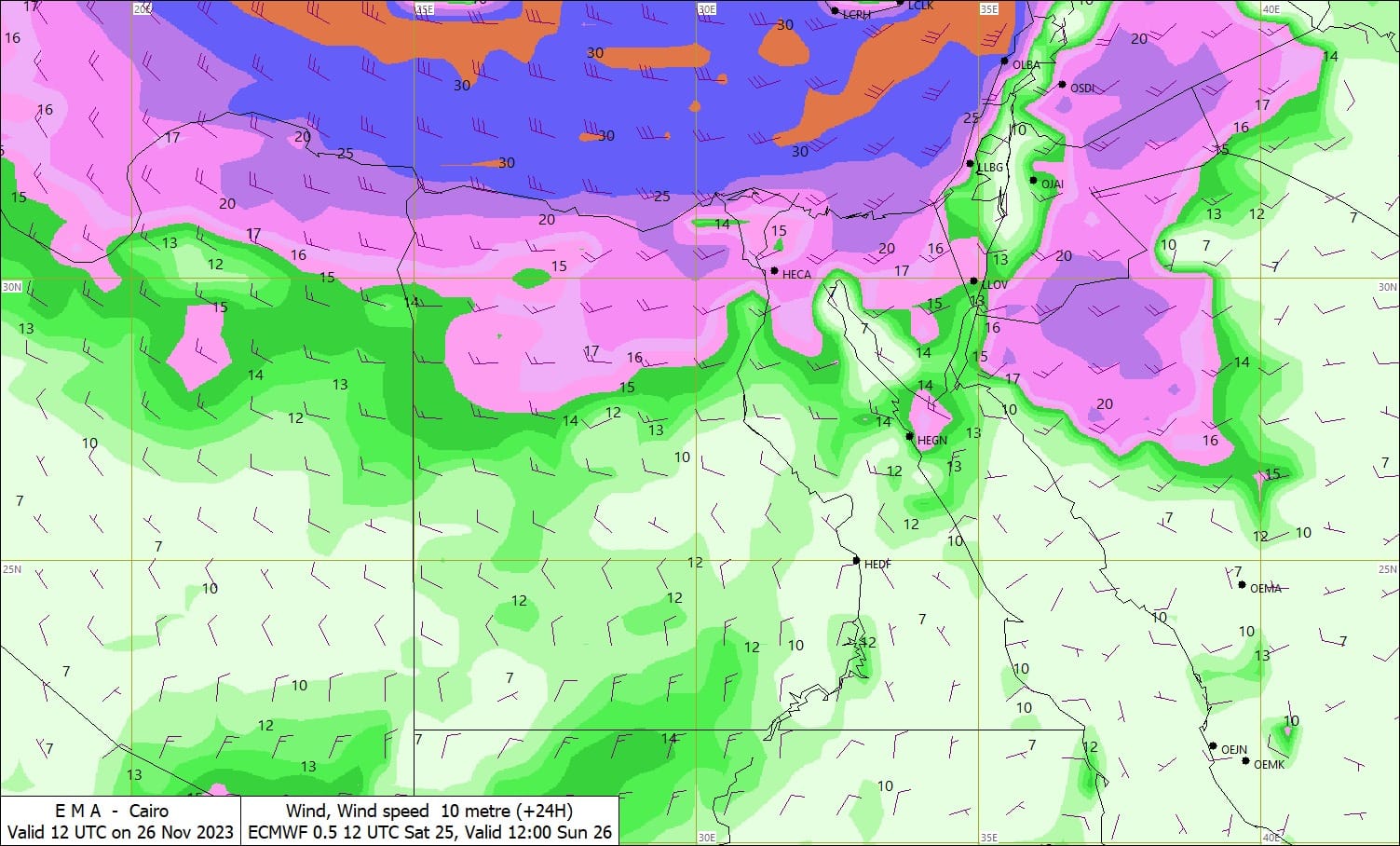 وتوقعت هيئة الأرصاد الجوية فى منشور لها على حسابها بموقع التواصل الاجتماعي "فيس بوك"،: استمرار نشاط الرياح المثيرة للرمال على القاهرة الكبرى والوجه البحري والسواحل الشمالية ومدن القناة وخليج السويس وشمال ووسط سيناء وشمال الصعيد والذي تنخفض معه مستوى الرؤية الأفقية على فترات متقطعة.