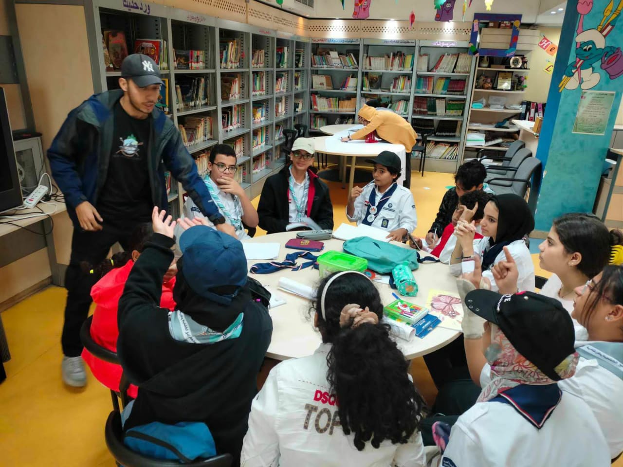 وتم تنظيم ورشة قدمها شريف محمد رمضان مدرب بالاتحاد العام للكشافة وقام بالتحدث مع الأطفال عن قضية فلسطين وما يحدث هناك لما يتوافق مع عقولهم وقدرتهم على استيعاب ما يحدث، كما قام الأطفال بأنشطة فنية عبارة عن رسم لوحات للتضامن ودعم القضية الفلسطينية.