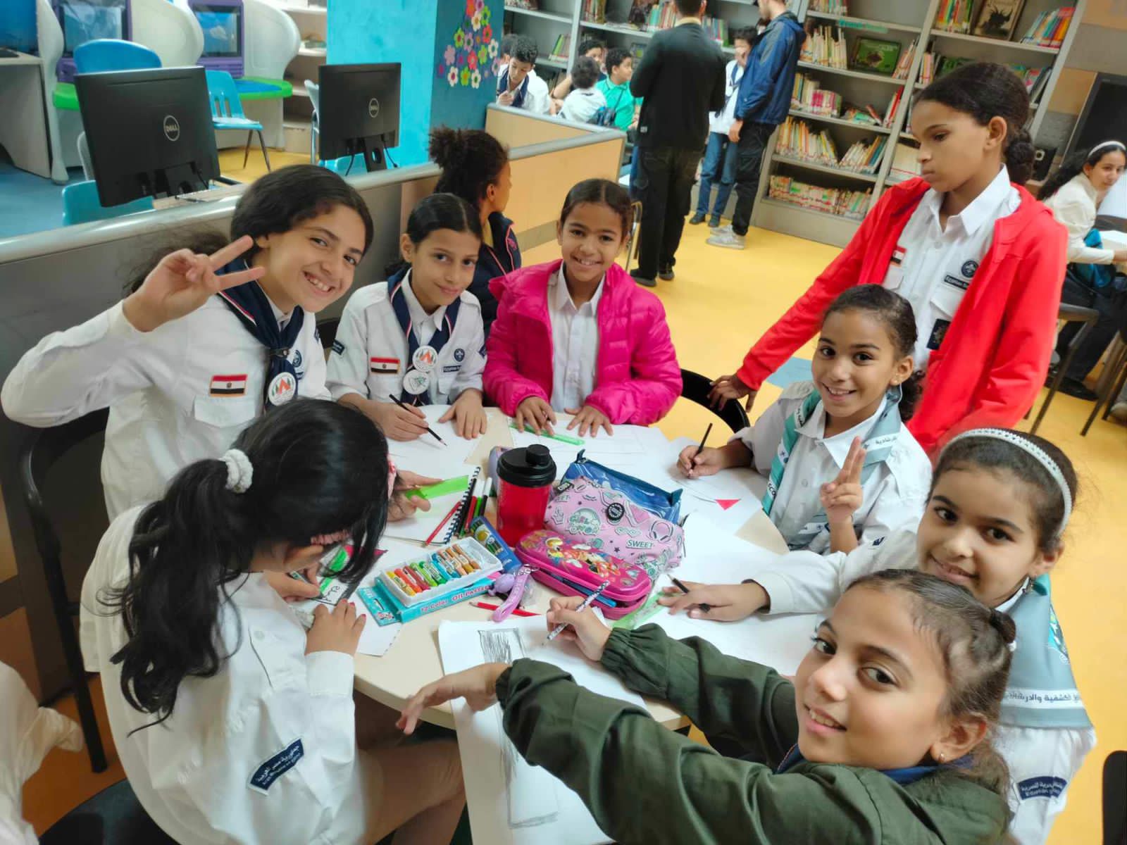 أطفال مكتبة مصر الجديدة يوجهون رسالة تضامن لـ غزة بالفن والرسم