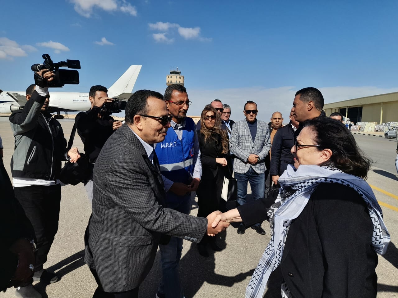 استقبل اللواء هشام الخولي نائب محافظ شمال سيناء، اليوم، الدكتور خالد عبد الغفار وزير الصحة المصري والدكتورة مي الكيلة، وزير الصحة الفلسطينية في مطار العريش الدولي أثناء زيارتهم إلى محافظة شمال سيناء.