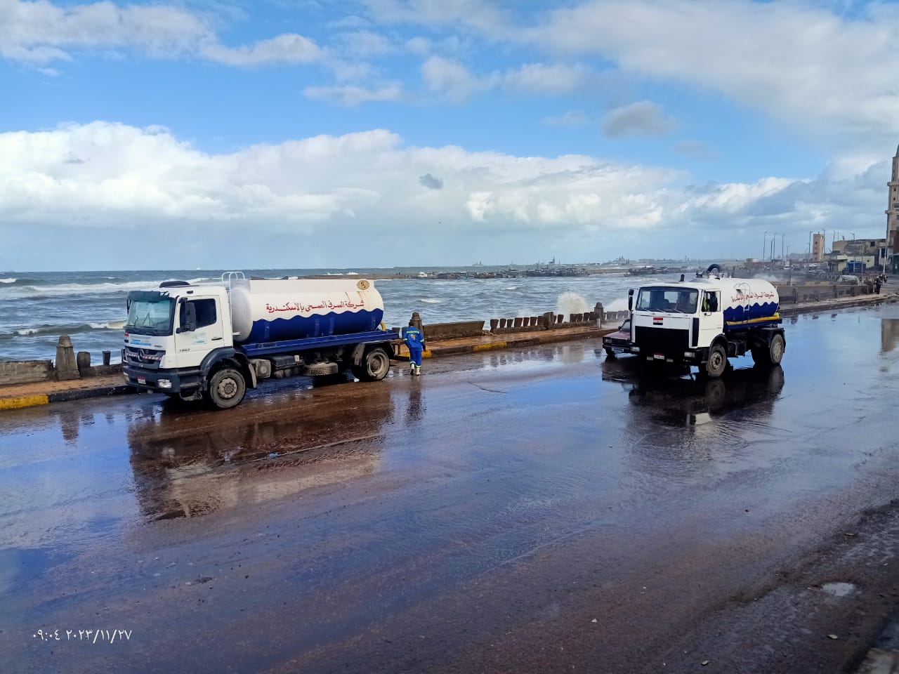 كما تابعت رئيس حي العجمي أعمال وضع حواجز خرسانية بكورنيش المكس لحجز ما خروج الأمواج علي الطريق كما تم رفع المخلفات بالتعاون مع شركة نهضة مصر وكسح تجمعات بسيطة لمياه الأمطار بسيارات شركة الصرف الصحي.