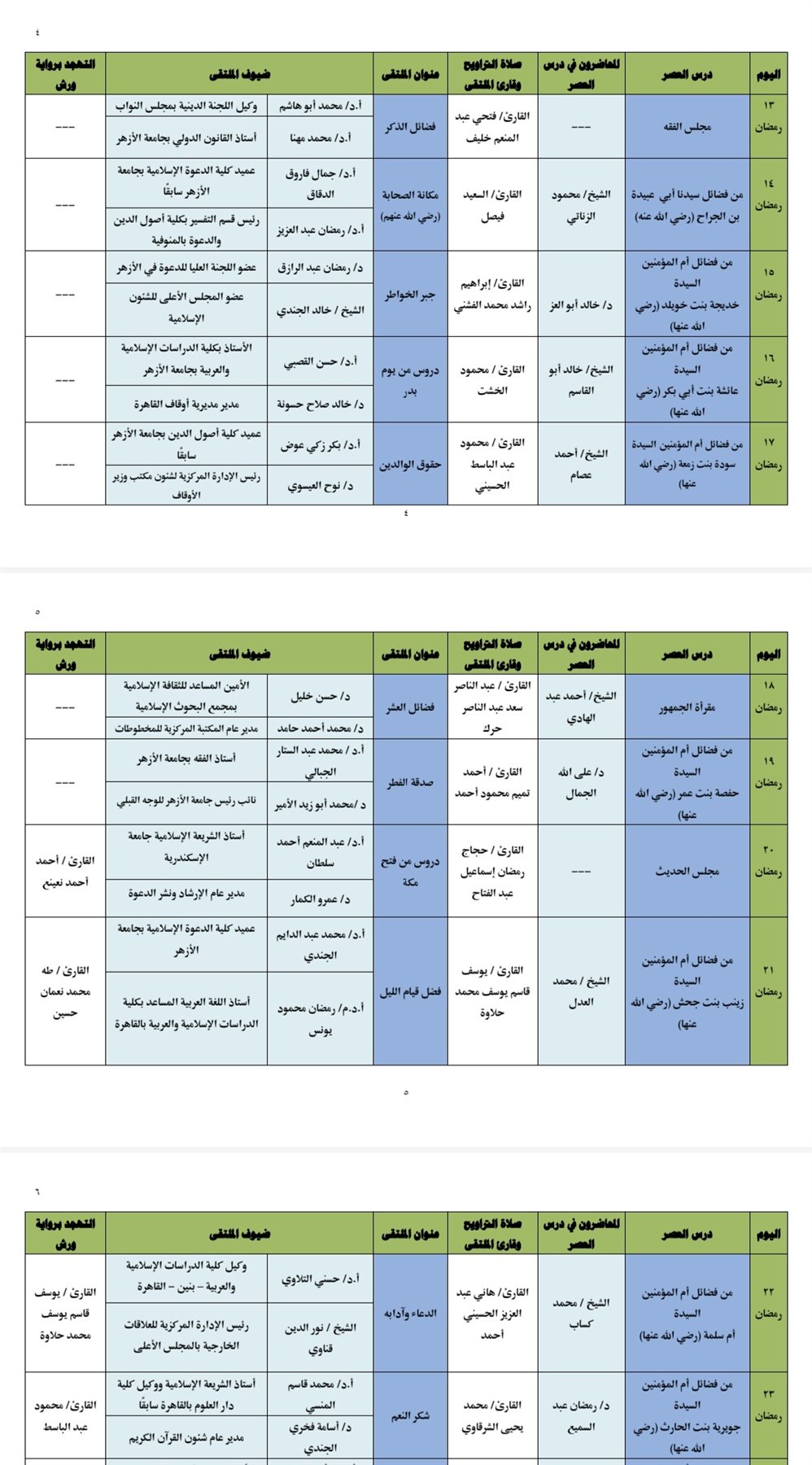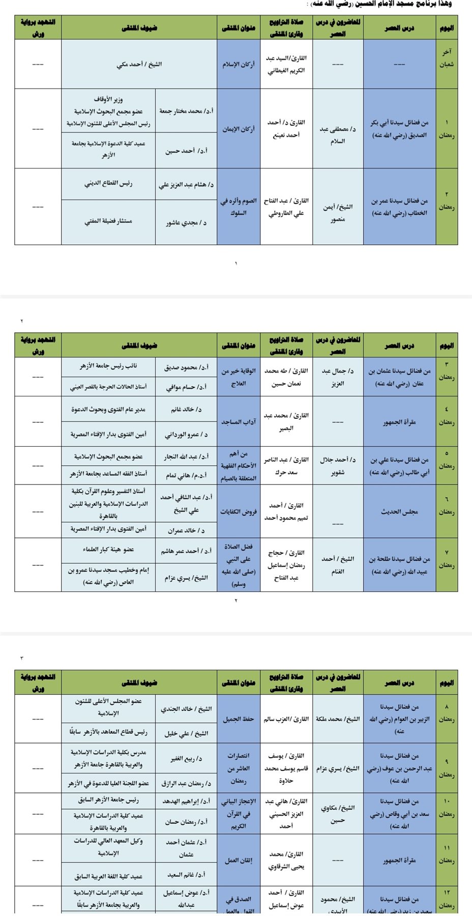 نشرت وزارة الأوقاف نموذجًا بفعاليات إحياء ليالي رمضان المقبل منها بأسماء العلماء والقراء الذين سوف يحيون أيام وليالي شهر رمضان المبارك (1445هــ، 2024م) بمسجد الإمام الحسين.