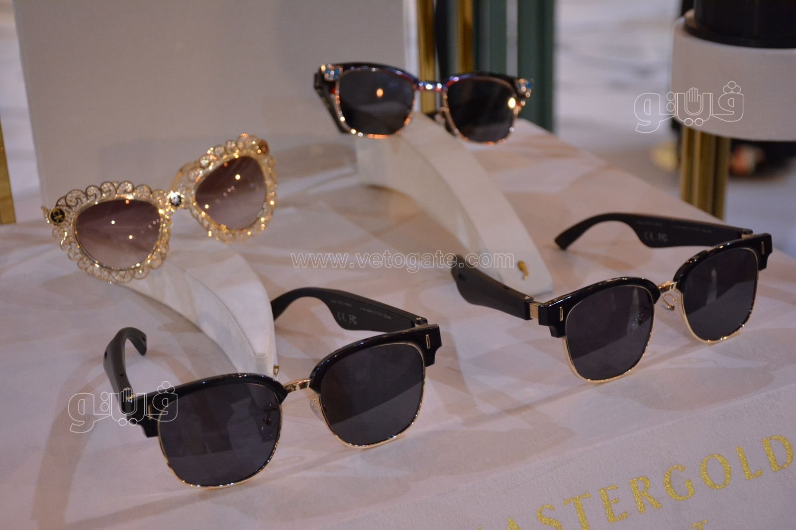عرضت إحدى الشركات المشاركة في معرض نيبو للذهب اليوم الإثنين 27-11-2023 نظارات شمسية مصنوعة من الذهب.