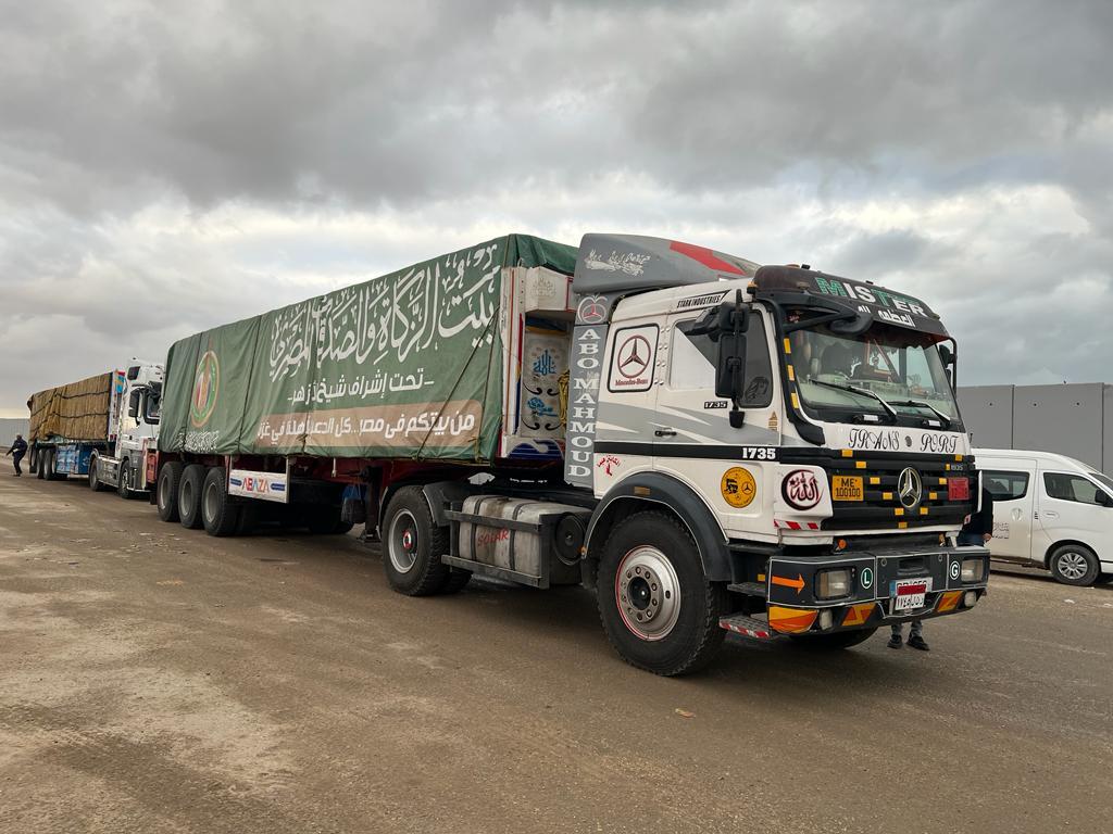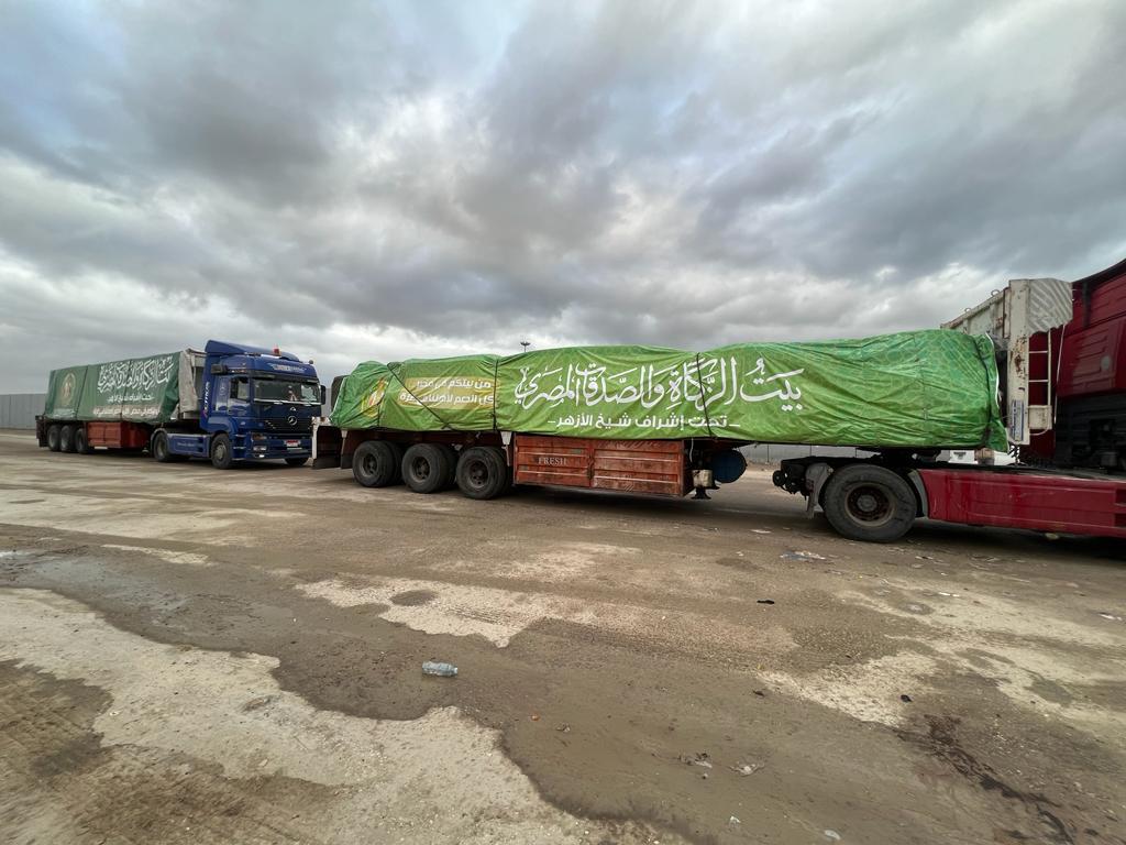 بتوجيهات شيخ الأزهر، القافلة الثالثة لبيت الزكاة تعبر ميناء رفح البري دعمًا لغزة (صور)